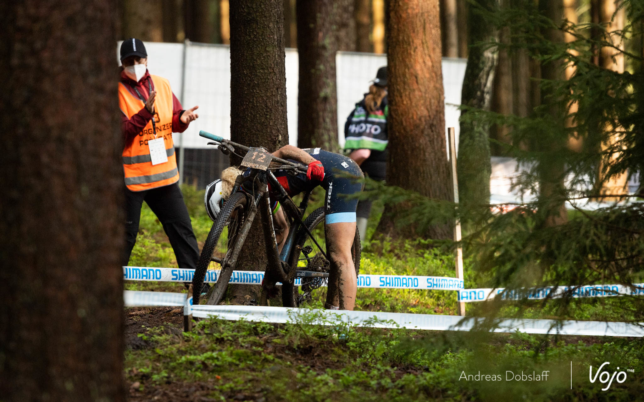 Elle ne finira finalement pas le tour et abandonnera un peu plus loin, visiblement en proie à une vive douleur au ventre. Heureusement, il semblerait que les derniers examens médicaux n’ait rien révélé d’autres que quelques contusions et elle devrait être au départ du XCO dimanche.