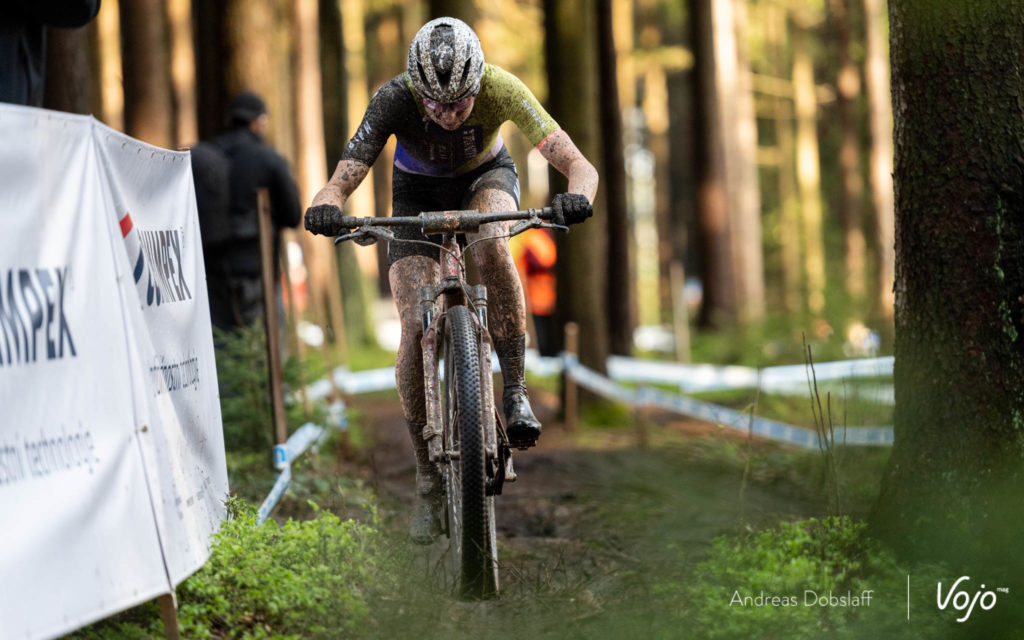 Devant, cette chute a un peu précipité les choses et Annie Last puis Linda Indergand commencent à avoir du mal à suivre. Dans le tour suivant, Lecomte et Batten s’échappent en tête, tandis que Rissveds contrôle devant Last et Indergand. Viennent ensuite Laura Stigger et Evie Richards, puis Kate Courtney et Sina Frei accompagnées par les deux Néerlandaises Anne Terpstra et Anne Tauber. Les groupes sont petits et les écarts importants, quelque chose d’inhabituel en XCC mais guère surprenant compte tenu du tracé du nouveau parcours.