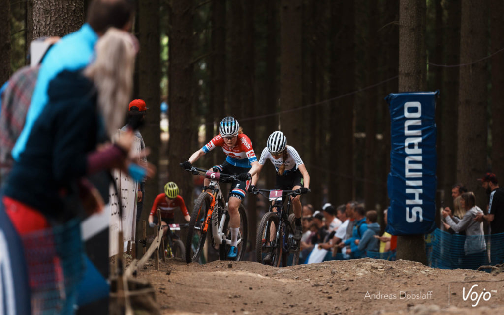 Avec deux courses séparées d’une semaine, on retrouve sans trop de surprises les mêmes têtes à l’avant de chaque course. 5e à Albstadt, Giada Specia monte sur le podium à Nove Mesto avec une troisième place tandis que Sofie Pedersen (ici derrière Puck Pieterse) descend d’un rang et se classe quatrième. La Suissesse Noëlle Buri complète le top 5.