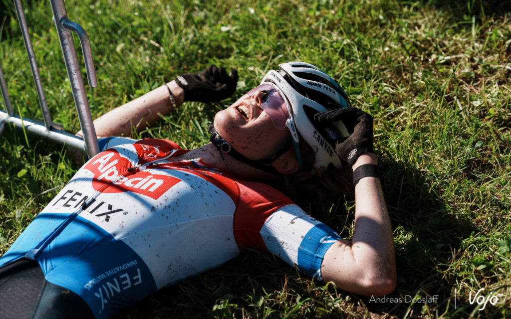 Après un tour d’observation, la Néerlandaise plaçait à son tour une attaque qui lui permettait de prendre quelques secondes d’avance, mais Line Burquier parvenait à faire l’effort pour recoller à l’entame des deux derniers tours. Ni l’une, ni l’autre ne réussira à prendre l’avantage rapidement et c’est finalement dans les derniers hectomètres que Puck Pieterse fera la différence, coupant la ligne avec deux petites secondes d’avance sur la Française.