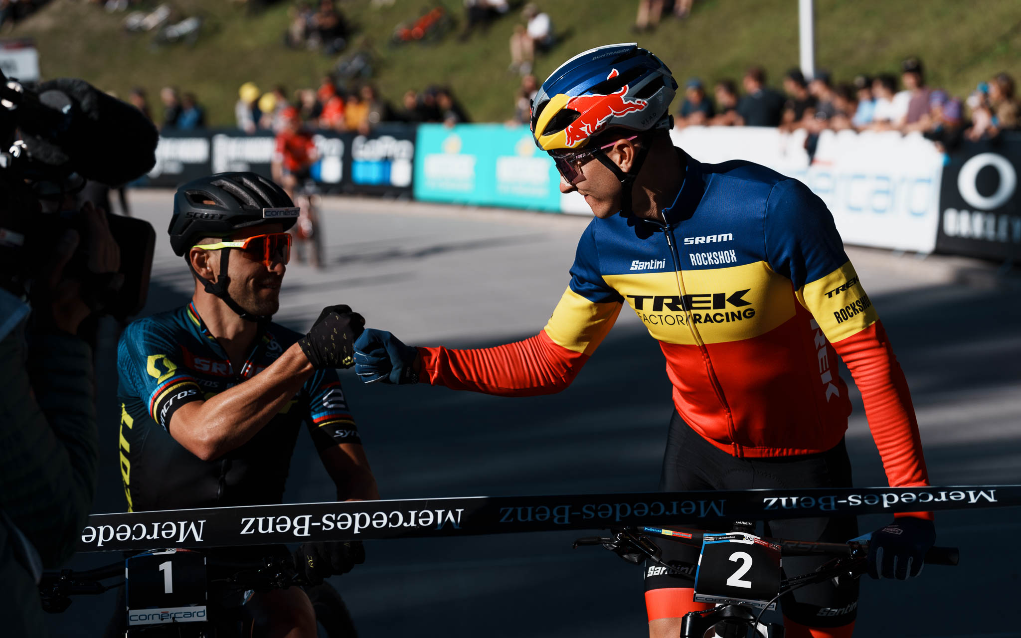 Derrière Schurter, qui n’a pas disputé le sprint, on trouve Luca Braidot puis Titouan Carod, Luca Schwarzbauer et enfin Vlad Dascalu. Dimanche, le match s’annonce explosif entre toute l’armada suisse (et Nino Schurter en particulier) et le jeune Roumain, très en vue depuis le début de saison mais encore jamais récompensé !