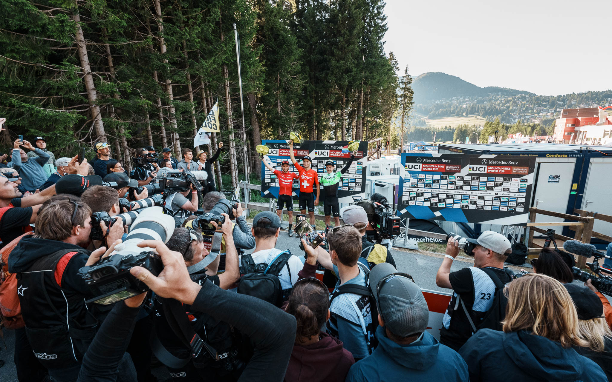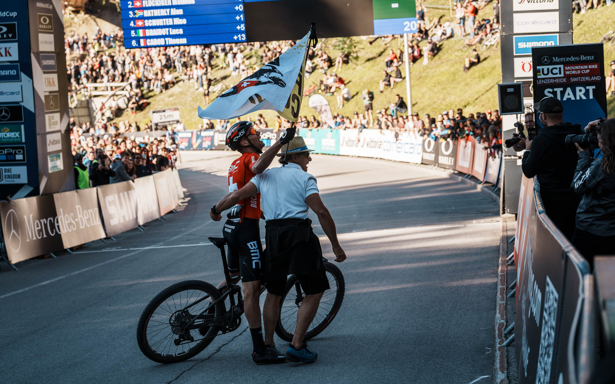 Il est accompagné sur le podium par l’infatigable Mathias Flückiger et Alan Hatherly, qui a réussi à revenir sur le trio puis à se glisser à l’intérieur de Nino Schurter dans le dernier virage.