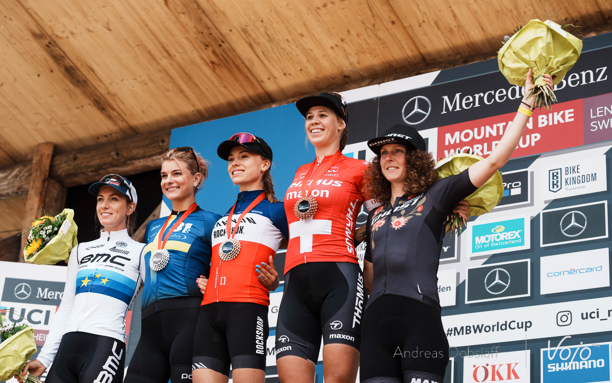 Le podium est complété par Pauline Ferrand-Prévot et Anne Terpstra, avec la Française qui a pris le meilleur sur la Néerlandaise au sprint. Incapables malgré tous leurs efforts de revenir sur le trio de tête en début de course, elles ont ensuite animé la lutte pour le podium avec Jolanda Neff et Martina Berta.