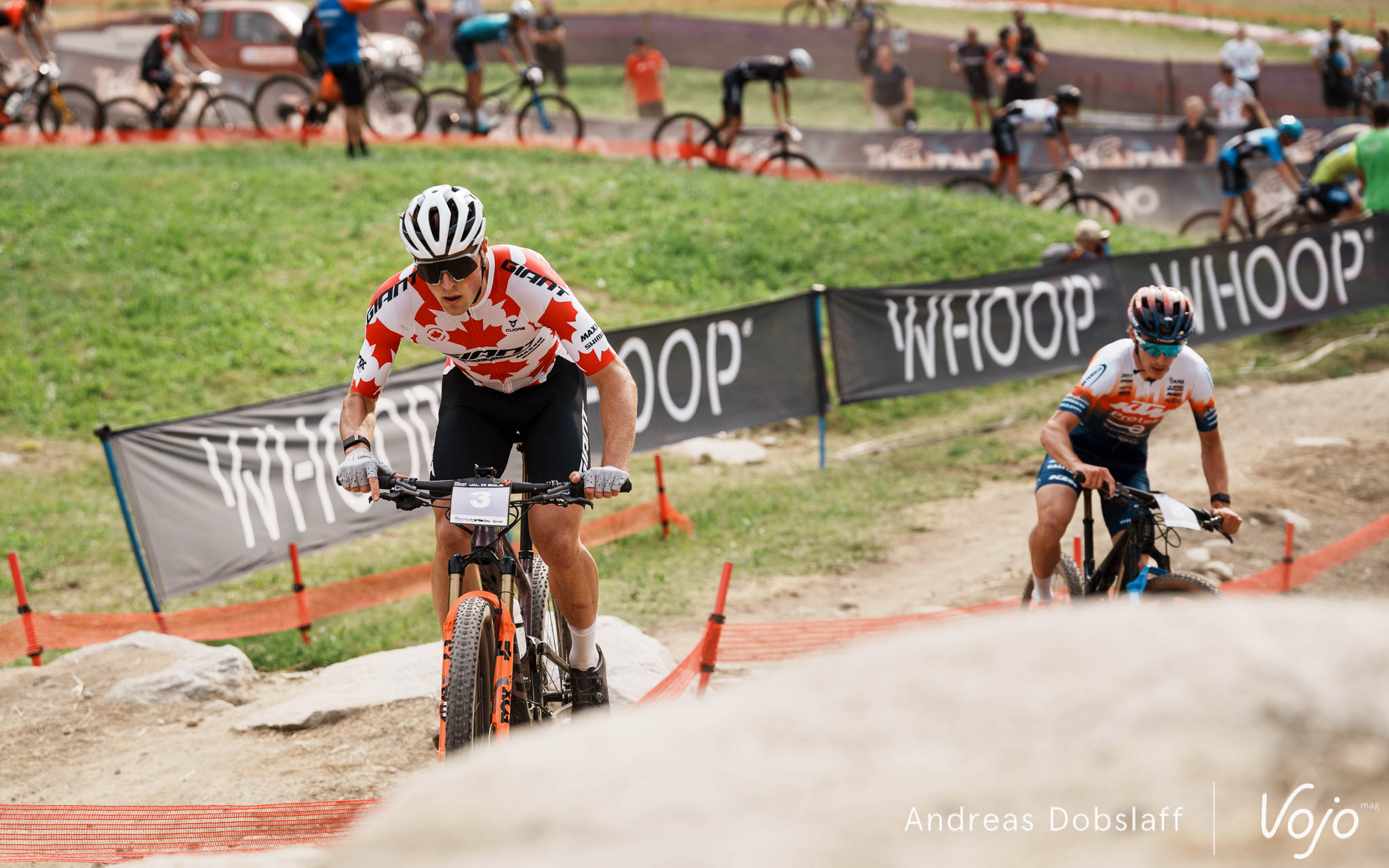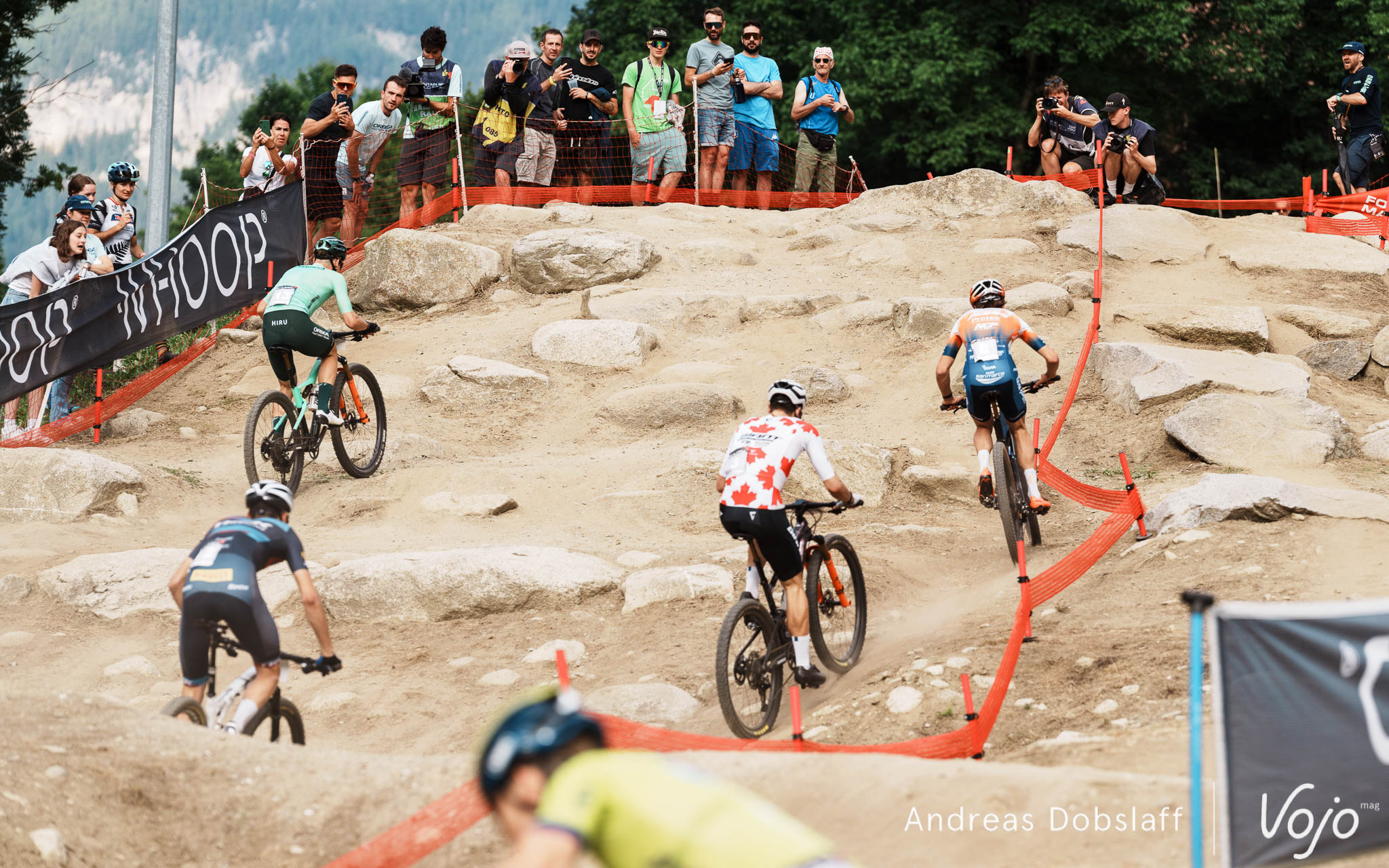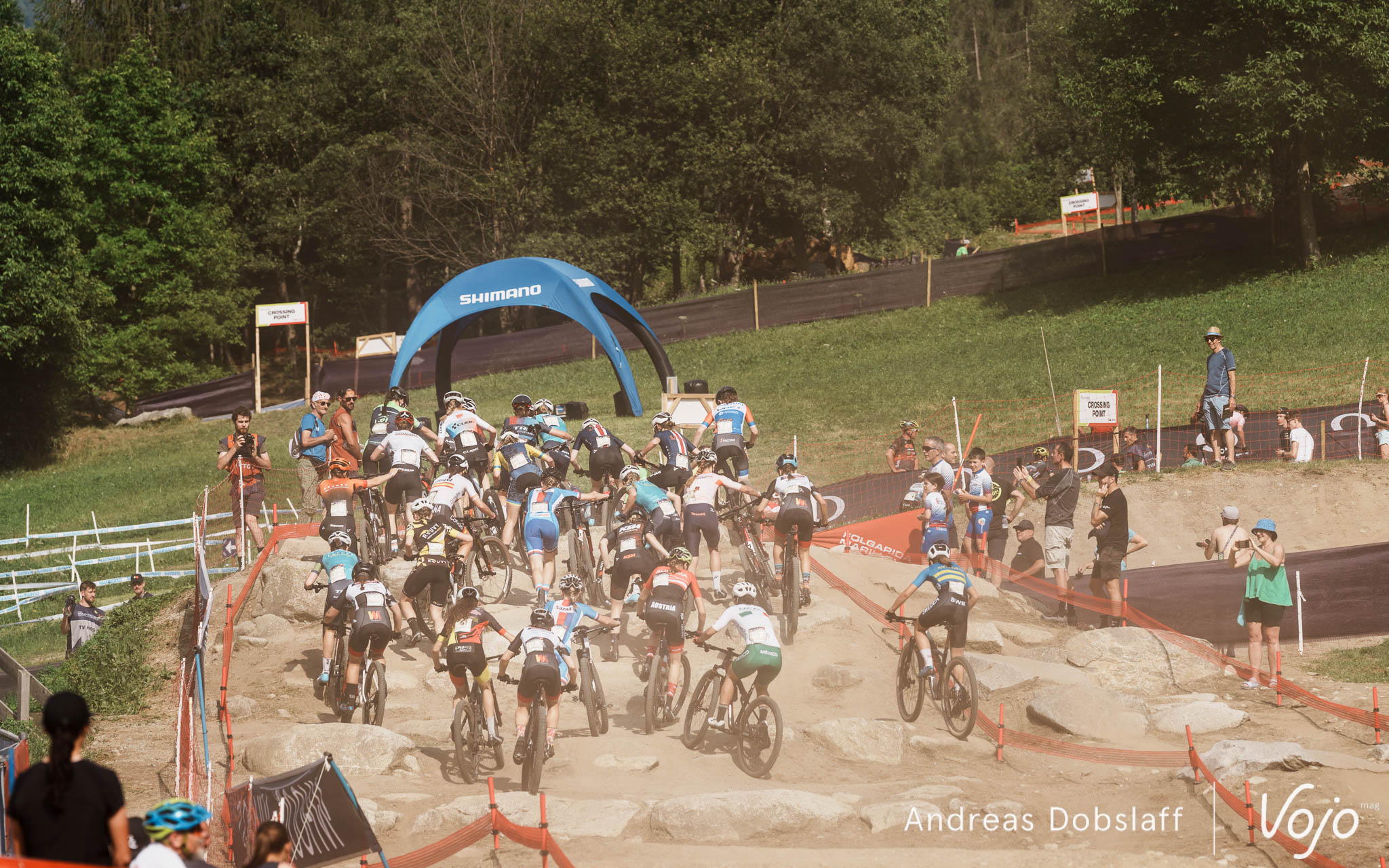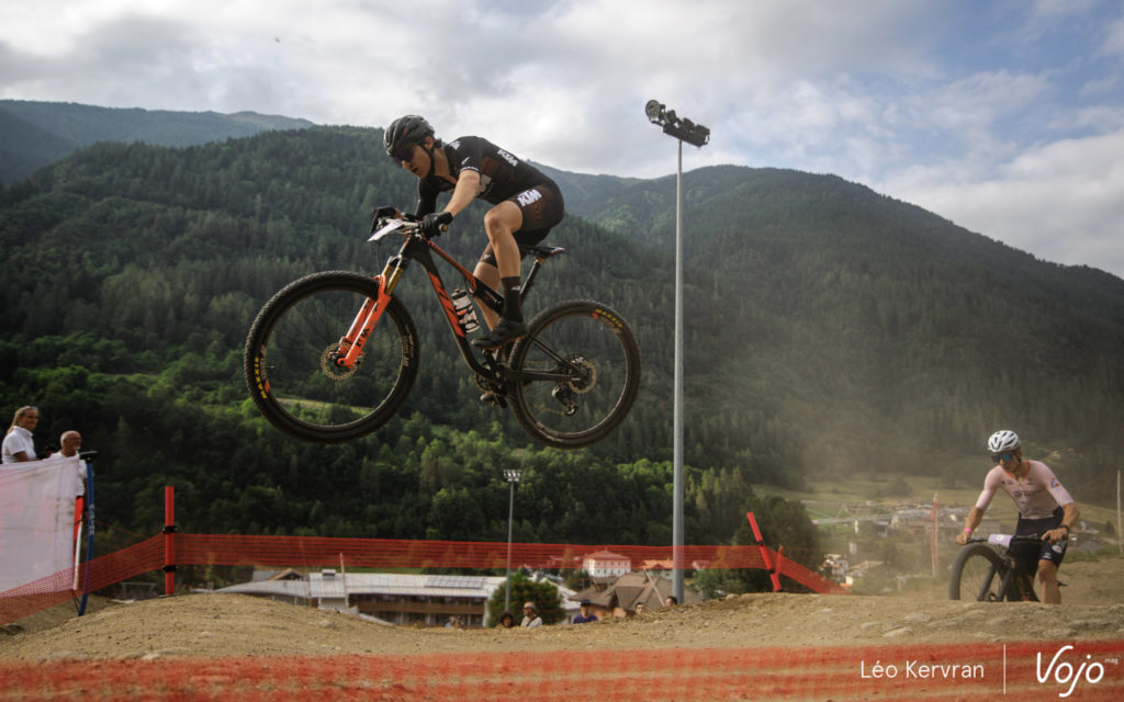 Le tracé du Short Track de l’épreuve italienne est un peu plus technique que d’autres, avec notamment le pierrier de la piste de Four Cross, à prendre ici en montée peu après le départ et qui a causé quelques embouteillage en queue de peloton, même si ce sont seulement les 40 meilleurs de chaque catégorie qui sont conviés sur cette épreuve d’ouverture.