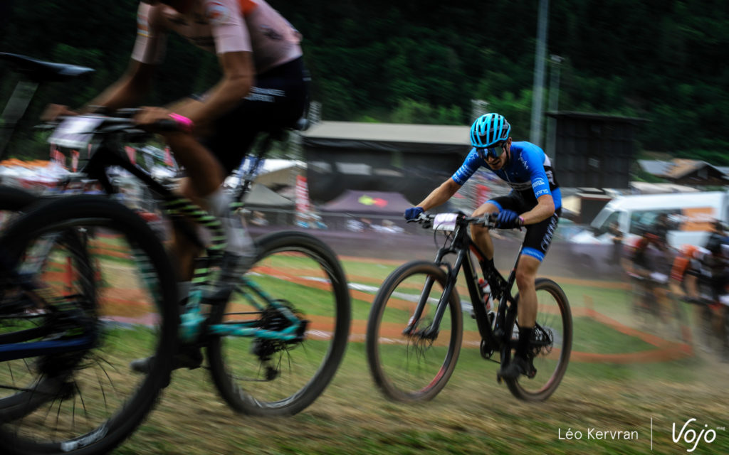 « Seulement » troisième cette fois, le leader de la coupe du monde XCC, Adrien Boichis, avait de très bonnes jambes, mais il a dû laisser filer la victoire sur une petite erreur de placement. Il nous explique : « J’ai pris un bon départ et j’ai suivi ma stratégie qui était de rendre la course difficile pour être en petit groupe, qu’on soit le moins possible devant. Dans le dernier tour j’ai eu un moment d’hésitation au passage sur la ligne, j’ai dû freiner et ça m’a coûté la course. Je me suis retrouvé dernier du groupe à devoir tous les redoubler et bien sûr je n’ai pas eu le temps dans le dernier tour. Je suis un petit peu déçu d’avoir raté ma stratégie comme ça. Mais bon, je me sentais bien et j’espère progresser en apprenant de mes erreurs. »