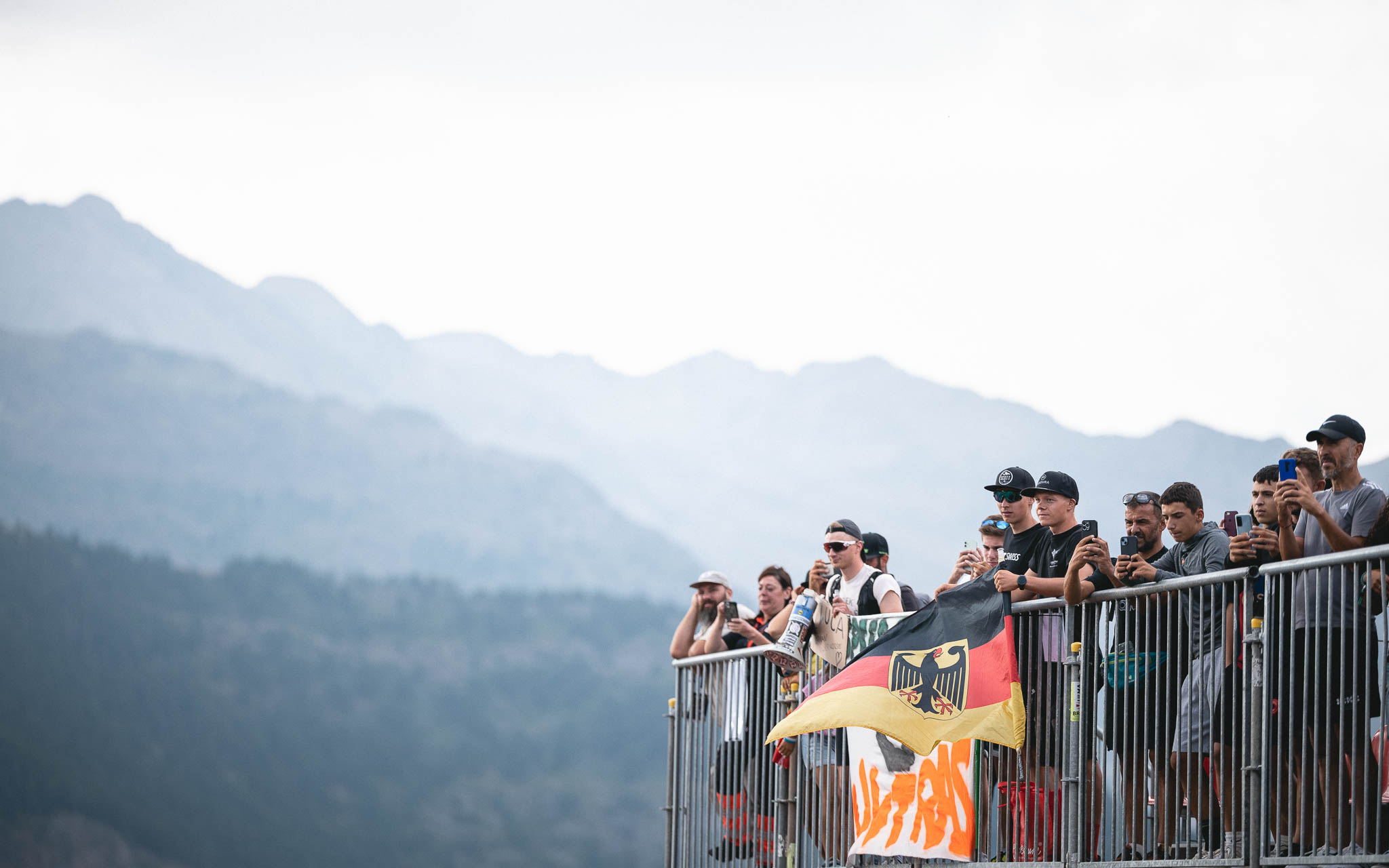 À la mi-course, le coureur du team Thömus Maxon fait l’effort et hausse le rythme en tête de course. Décidément, le pilote suisse ne semble pas vouloir rendre sa couronne ici sur le circuit de Vallnord. Derrière, Luca Schwarzbauer semble accuser le coup mais tient bon… jusqu’au moment où le pilote allemand place une puissante attaque et prends les commandes des opérations.