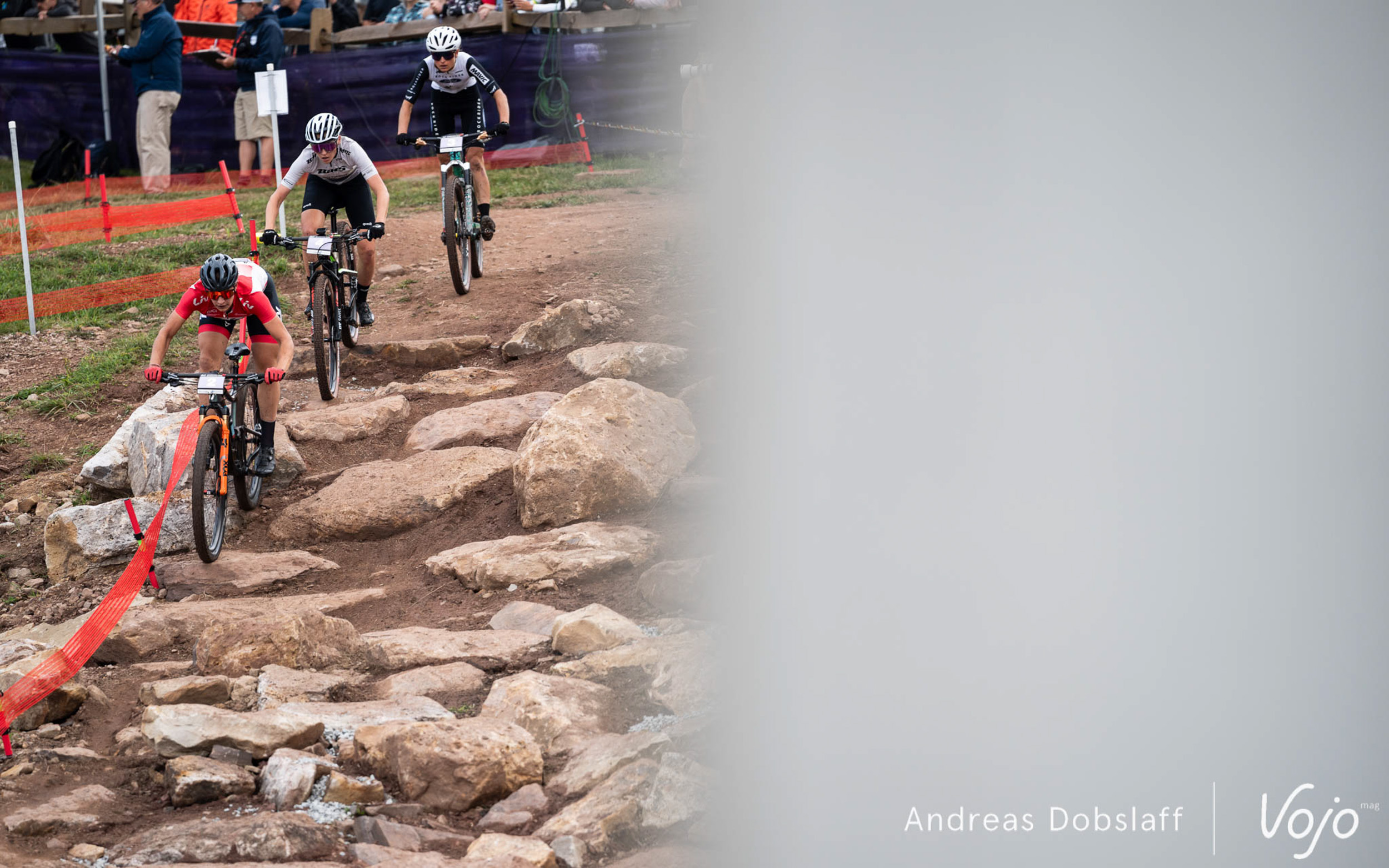 Dans les premiers tours, le Canadien joue aux chaises musicales avec le Français Luca Martin ou encore avec Riley Amos du team Trek Factory Racing XC. Sur son continent, le pilote originaire de Durango avait à coeur de mettre fin à sa série de deuxièmes positions en Short Track (2e à Nove Mesto, à Léogang, à Vallnord et aux Gets).