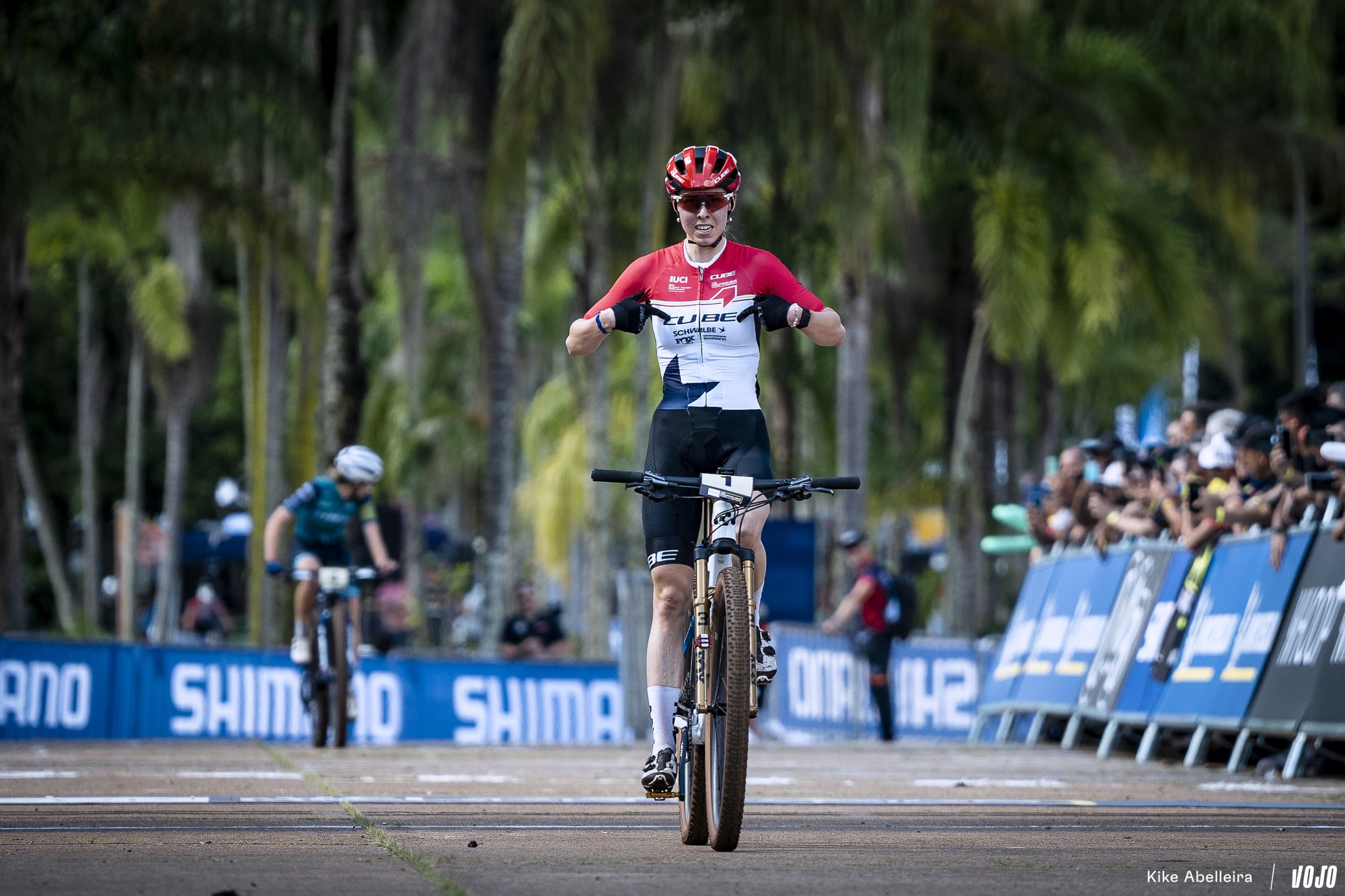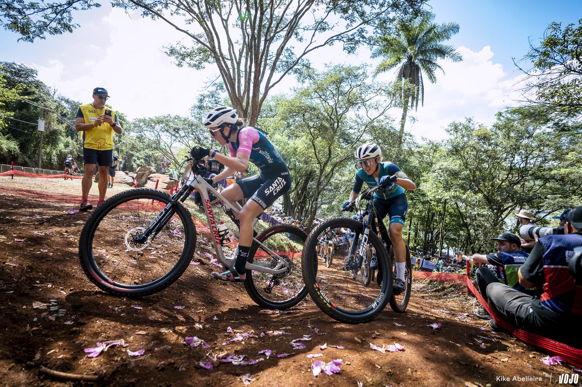 Auteure d’un week-end parfait en remportant à la fois le XCC et le XCO lors de la première manche de la saison le week-end dernier, l’Allemande Kira Böhm (Cube Factory Racing) débutait cette seconde manche brésilienne avec une cible dans le dos… surtout lorsqu’on se rappelle que celle-ci a mis fin à tout suspense à quatre tours de l’arrivée lors du XCC de la précédente manche. Aujourd’hui, la consigne pour ses adversaires est claire : ne pas laisser filer la pilote du Cube Factory Racing seule en tête.