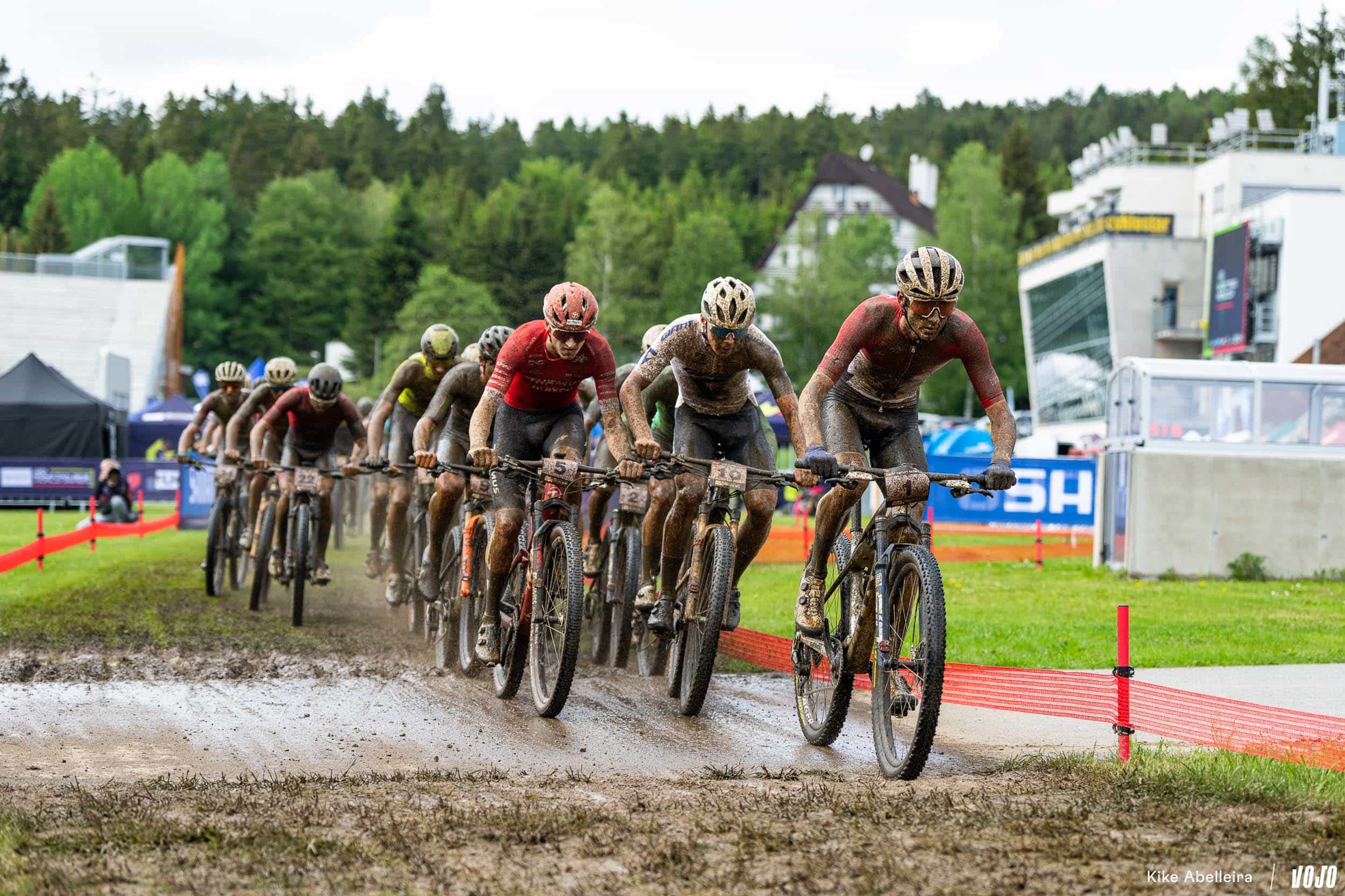 Bonne nouvelle ! Après une semaine de pluie quotidienne le stade biathlon de Nové Město na Moravě, qui accueille la coupe du monde de XC depuis 2011, est épargné par la pluie ce vendredi en début d’après-midi à l’heure du départ des épreuves XCC U23. Néanmoins, le sol est encore bien trempé et dans une course en peloton comme celle-ci, pas sûr que les pilotes voient la différence…