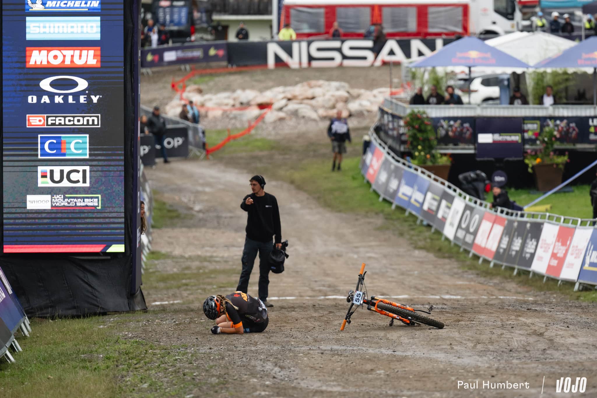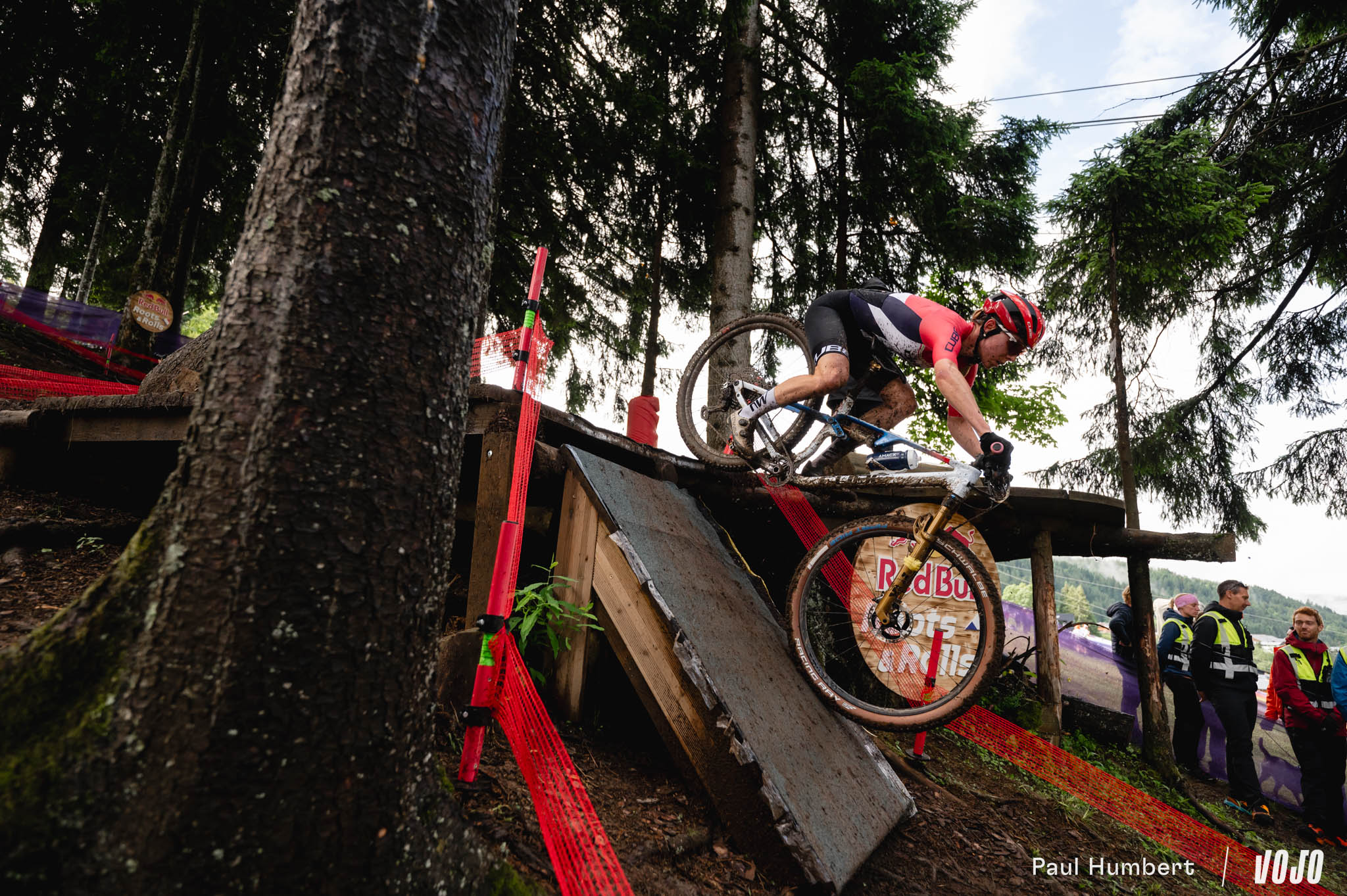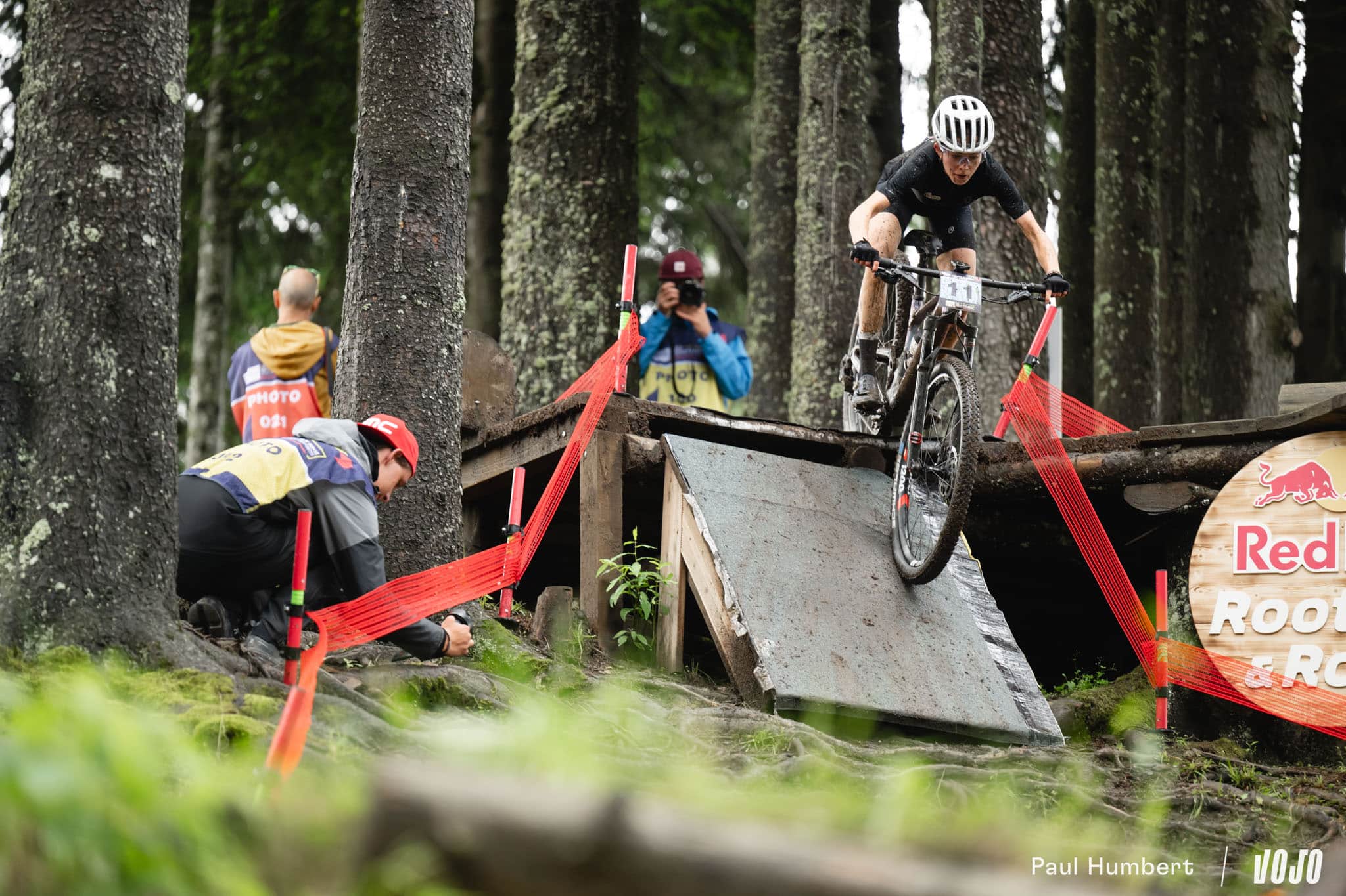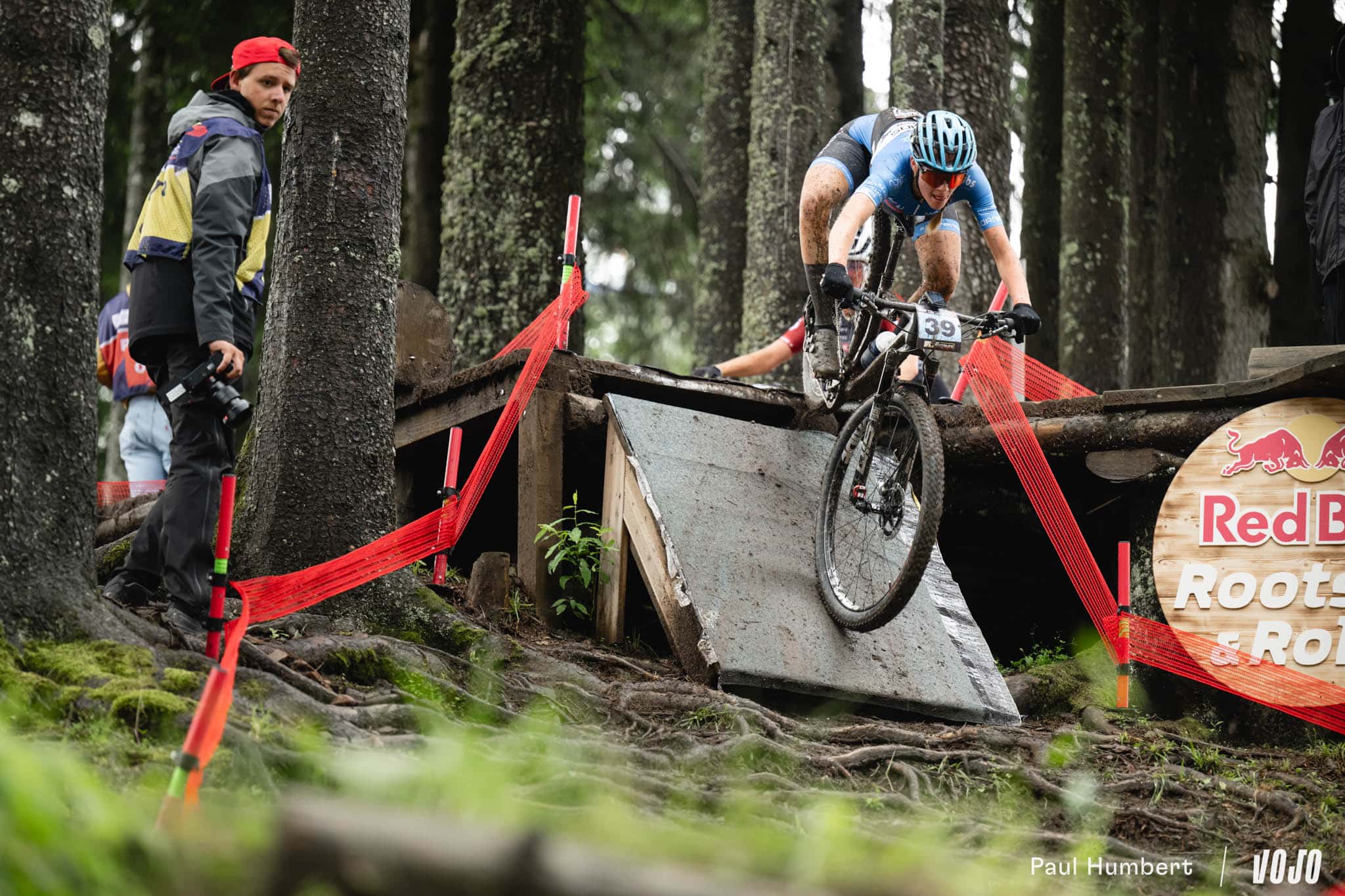 Même cas de figure chez les hommes, ou presque ! En l’absence de Riley Amos, maître incontesté de la catégorie cette saison, Bjorn Riley faisait figure de grand favori mais un Français est venu lui disputer la victoire : malgré une côte cassée (suite à une chute à Crans-Montana) et tombé malade après la course suisse, sortant de plus d’une semaine sans vélo pour récupérer, le pilote de l’Orbea Factory Team Luca Martin a crânement tenté sa chance !