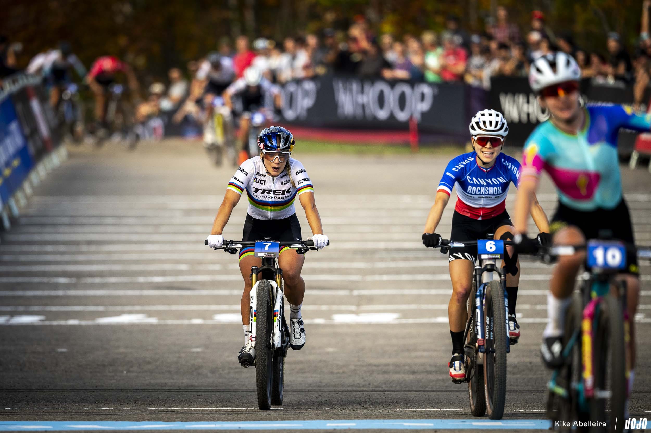 Pour le reste, la première ligne est bien complète, notamment avec Evie Richards et son joli maillot de championne du monde de la discipline, ou encore Laura Stigger, victorieuse ici même il y a un an et qui a signé sa première victoire en coupe du monde XCC le week-end dernier à Lake Placid.