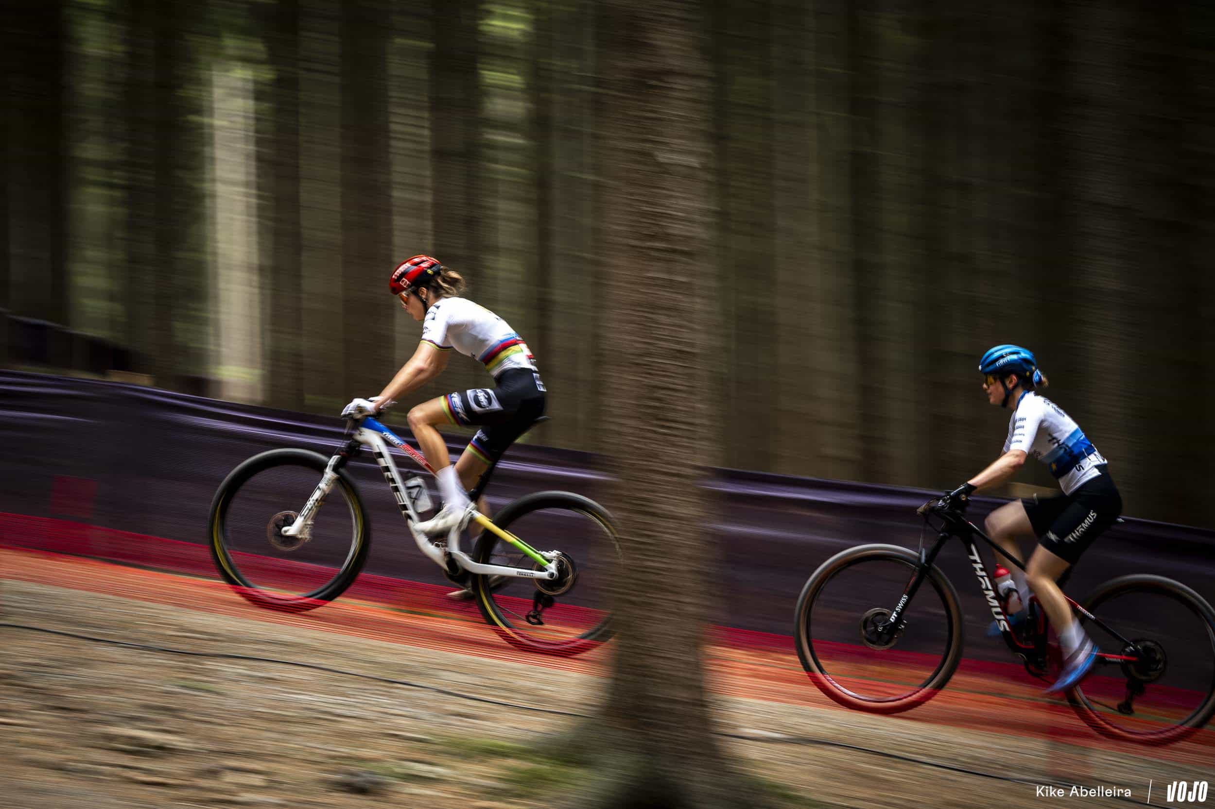 La réponse est Ella MacPhee, pilote du Wilier-Vittoria Factory Team, qui avait déjà montré de belles choses lors du XCC en terminant à la troisième place. Après une bataille face à Fiona Schibler pendant plusieurs tours, MacPhee parvient à prendre l’avantage et franchit la ligne d’arrivée en tête.