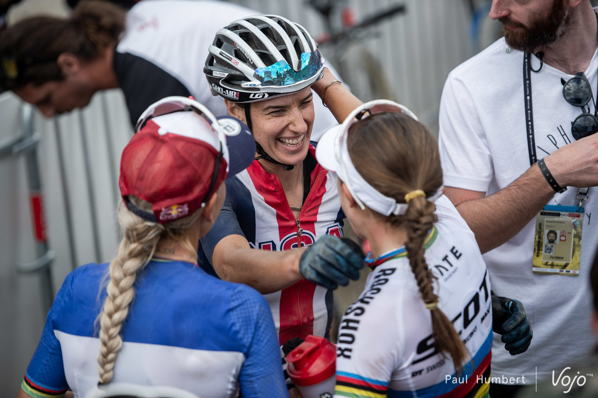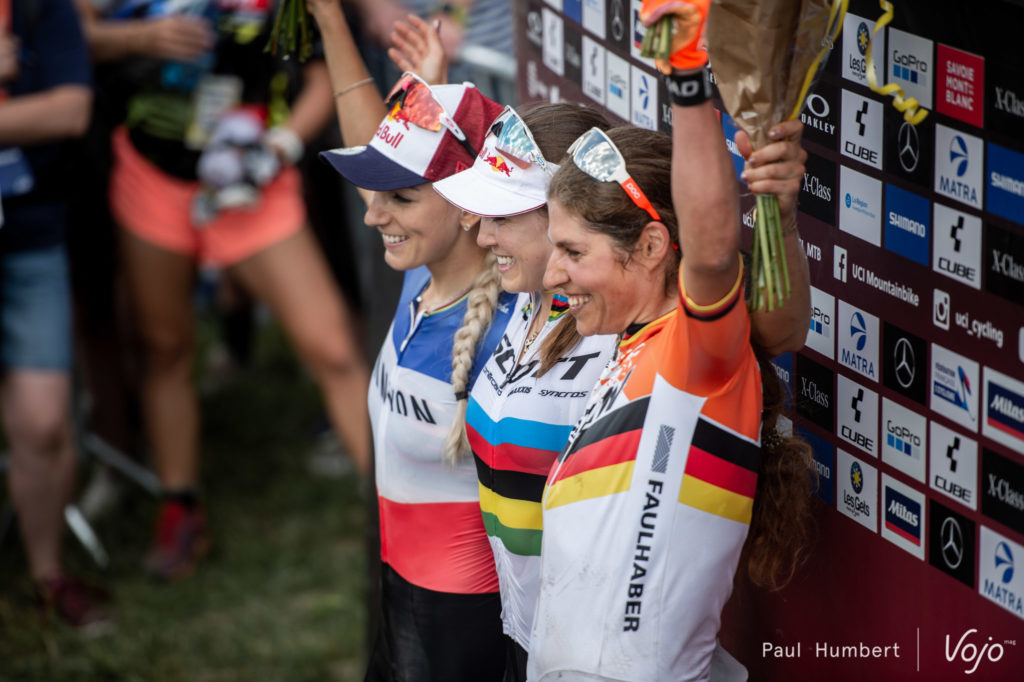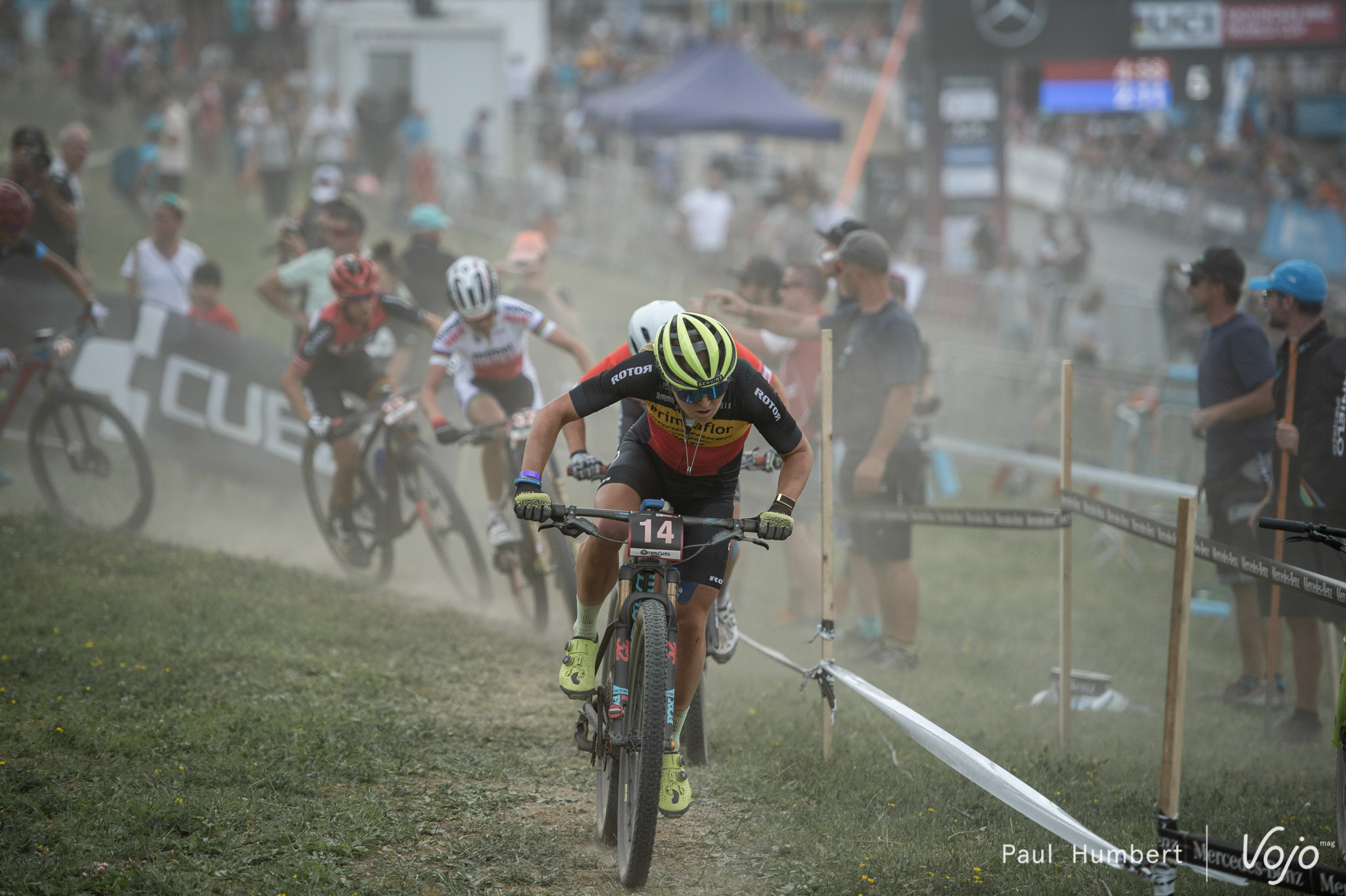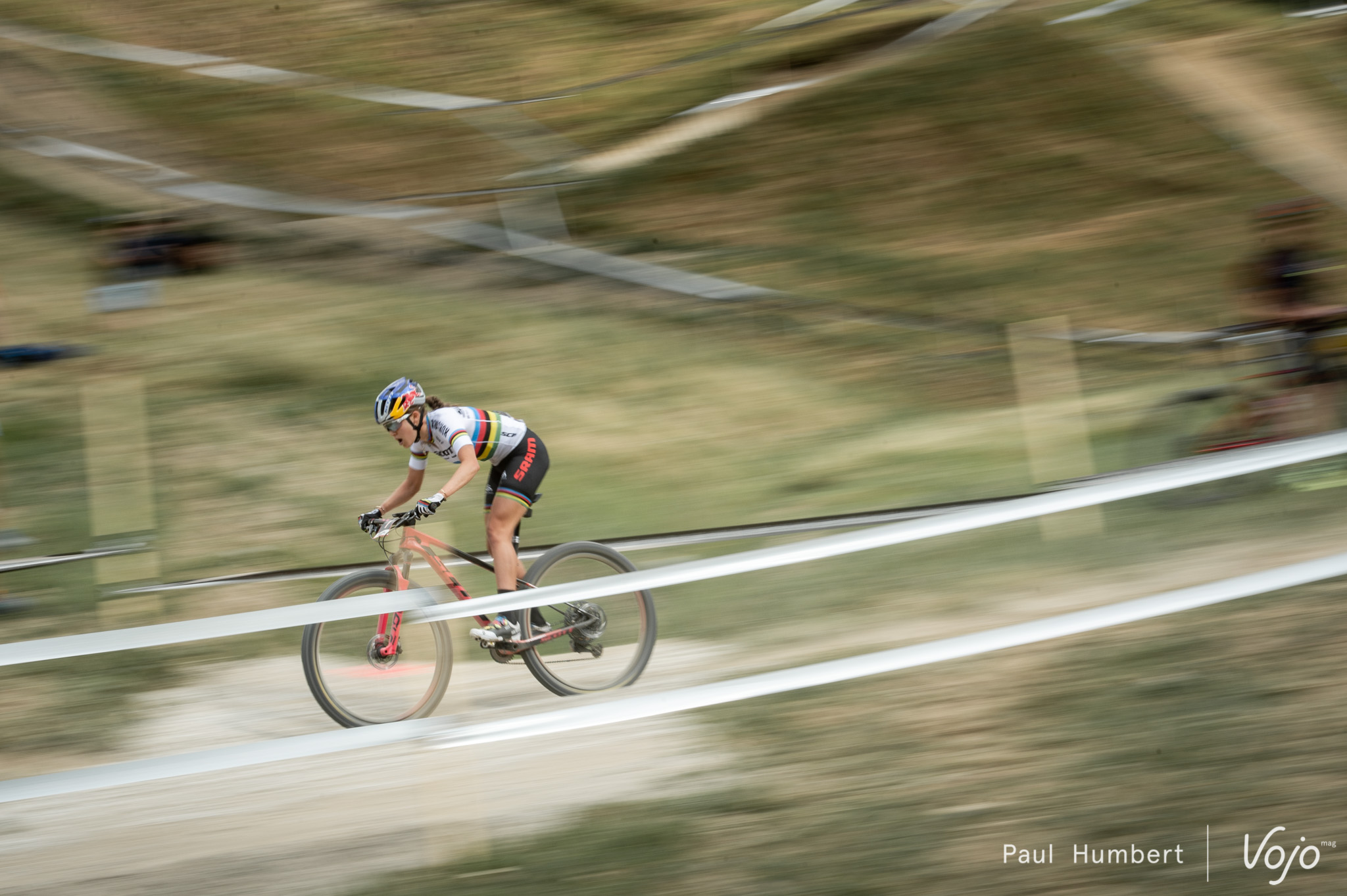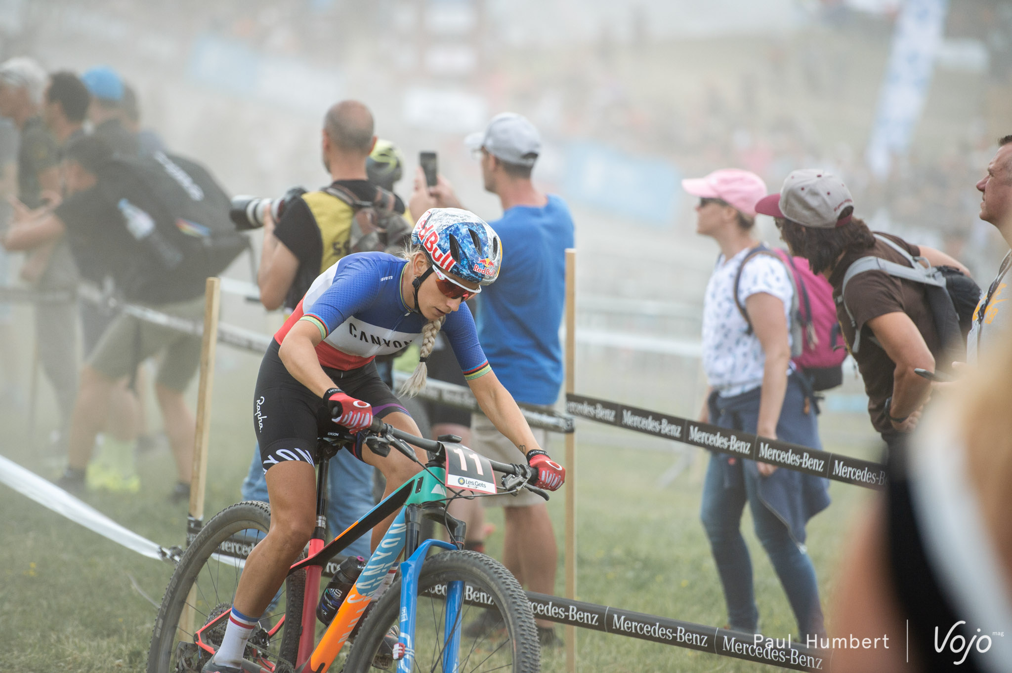 Derrière, la chasse s’est organisée avec Jolanda Neff, Pauline Ferrand-Prévôt et Elisabeth Brandau mais malgré leurs efforts, elles n’ont pas pu rentrer sur la championne du Monde.
