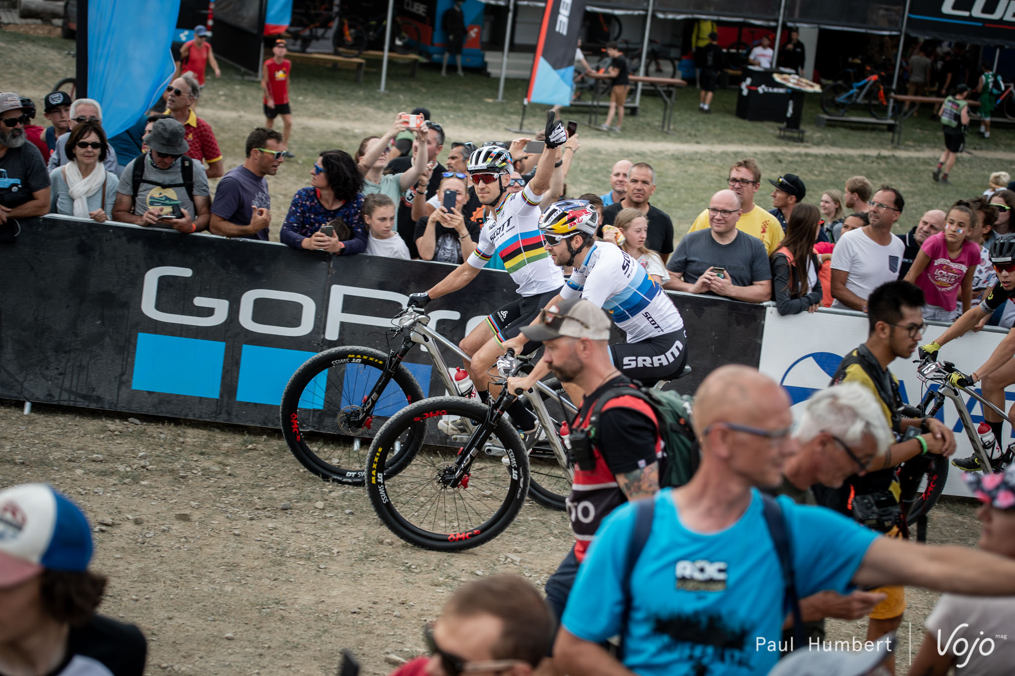 Derrière, on s’attendait à voir Nino Schurter mais c’est Victor Koretzky qui vient sauter sur la ligne le champion du Monde et prendre la 3e place.