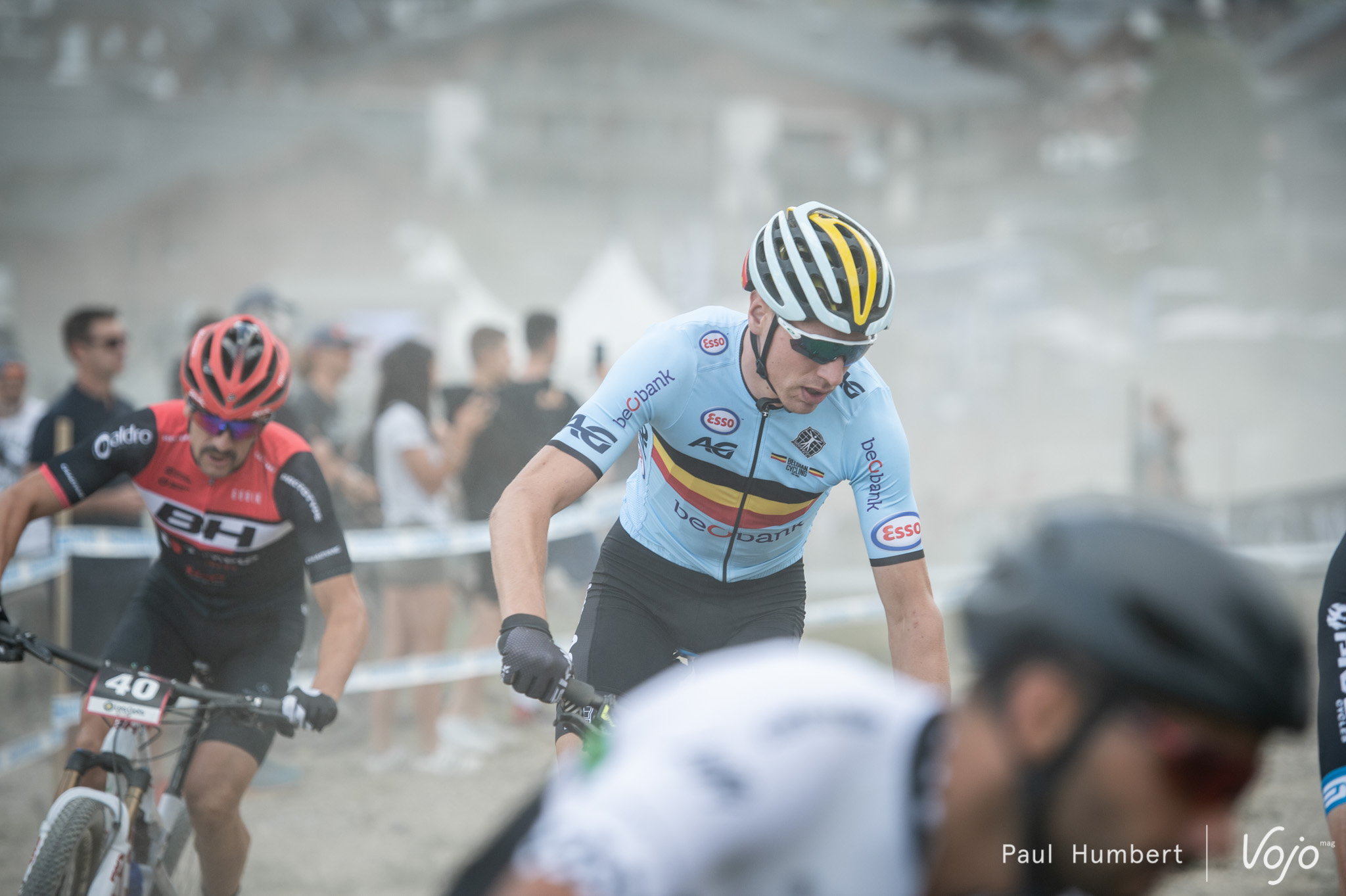 En effet, comme pour la descente le parcours de XCC des Gets est très sec et très poussiéreux. Au-delà de la 6-7e place, les coureurs évoluent donc dans un nuage de poussière ce qui peut laisser des traces.