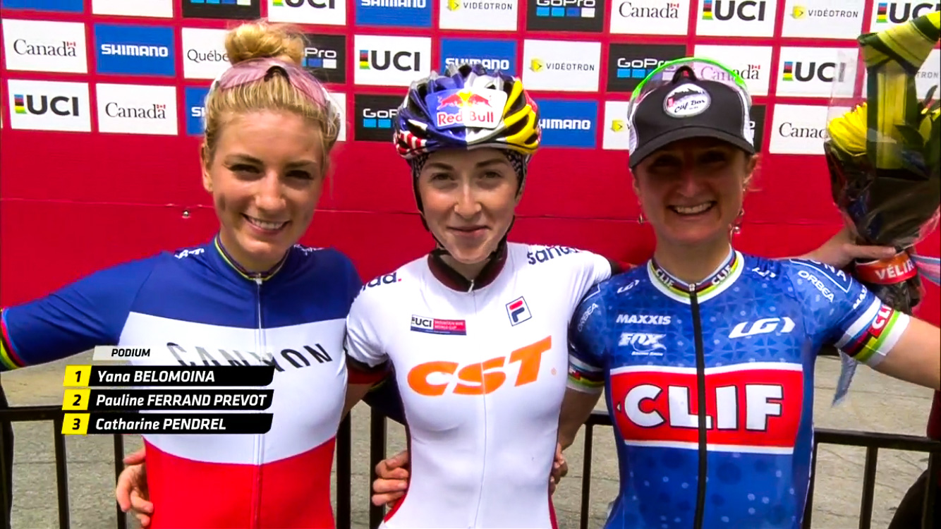 On le sentait arriver, voici la confirmation : Pauline Ferrand-Prevot est de retour ! Elle vient de prendre la 2e place de la Coupe du Monde de Mont-Ste-Anne derrière Yana Belomoina et devant les Canadiennes Pendrel et Batty. En attendant notre grand portfolio de cette magnifique course de la Française, voici les premiers résultats :