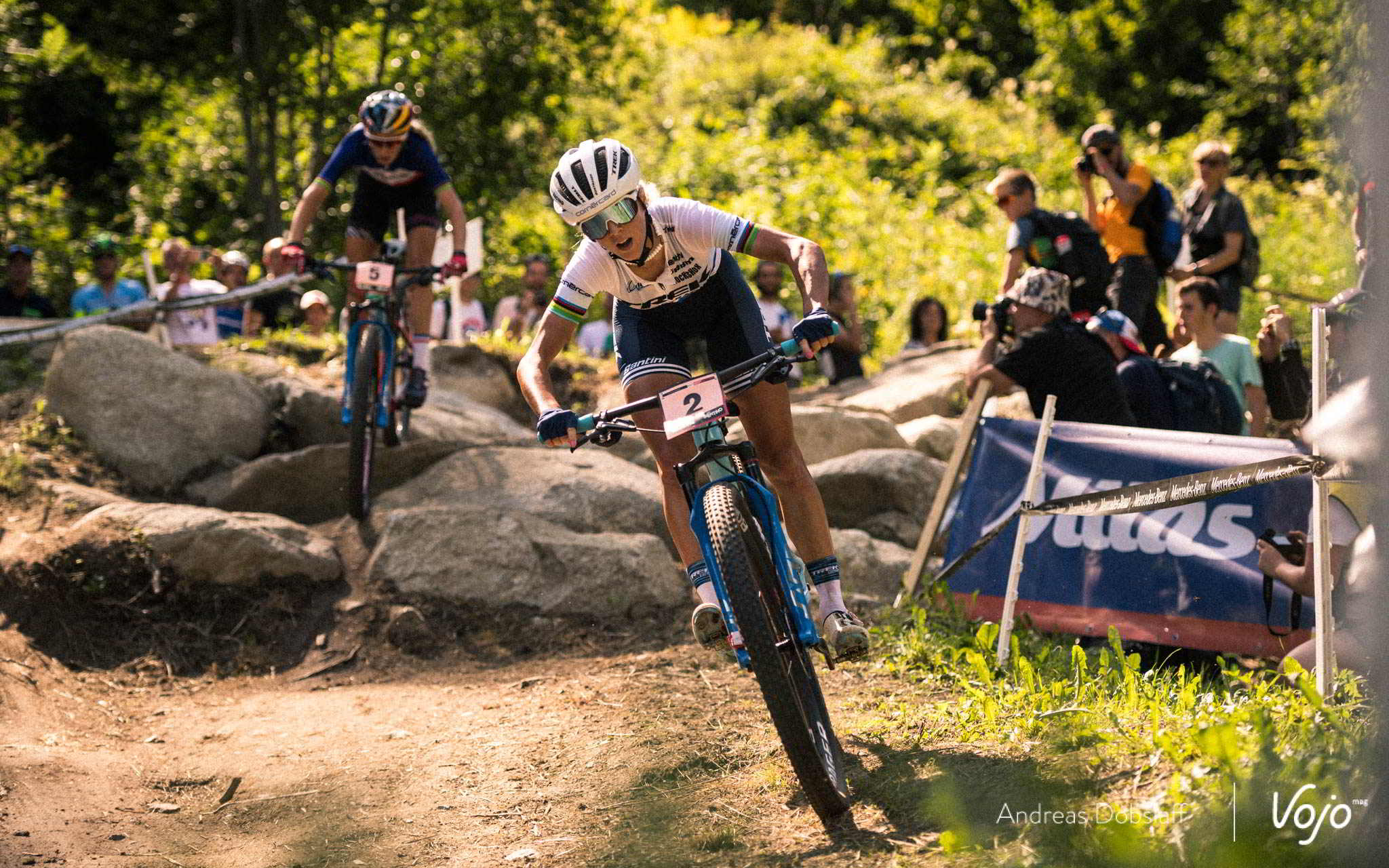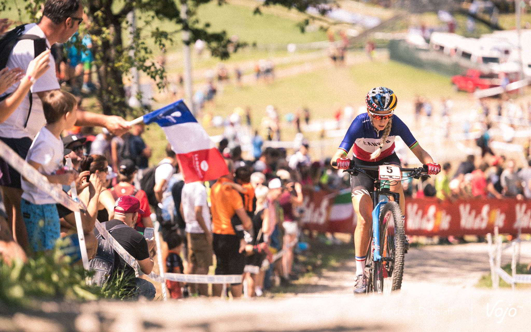 Elle l’avait annoncé : son objectif en 2019 était de remporter une coupe du monde XCO. C’est désormais chose faite ! Après un bon départ en première ligne, la Française de 27 ans ne quittera plus la tête de course… Elle parvient même à se détacher de Jolanda Neff dès le deuxième tour, sur ce circuit physique et cassant, pour dérouler l’essentiel de sa performance en solo ! Et l’écart se creuse, se creuse, pour attendre jusqu’à près de 50 secondes.