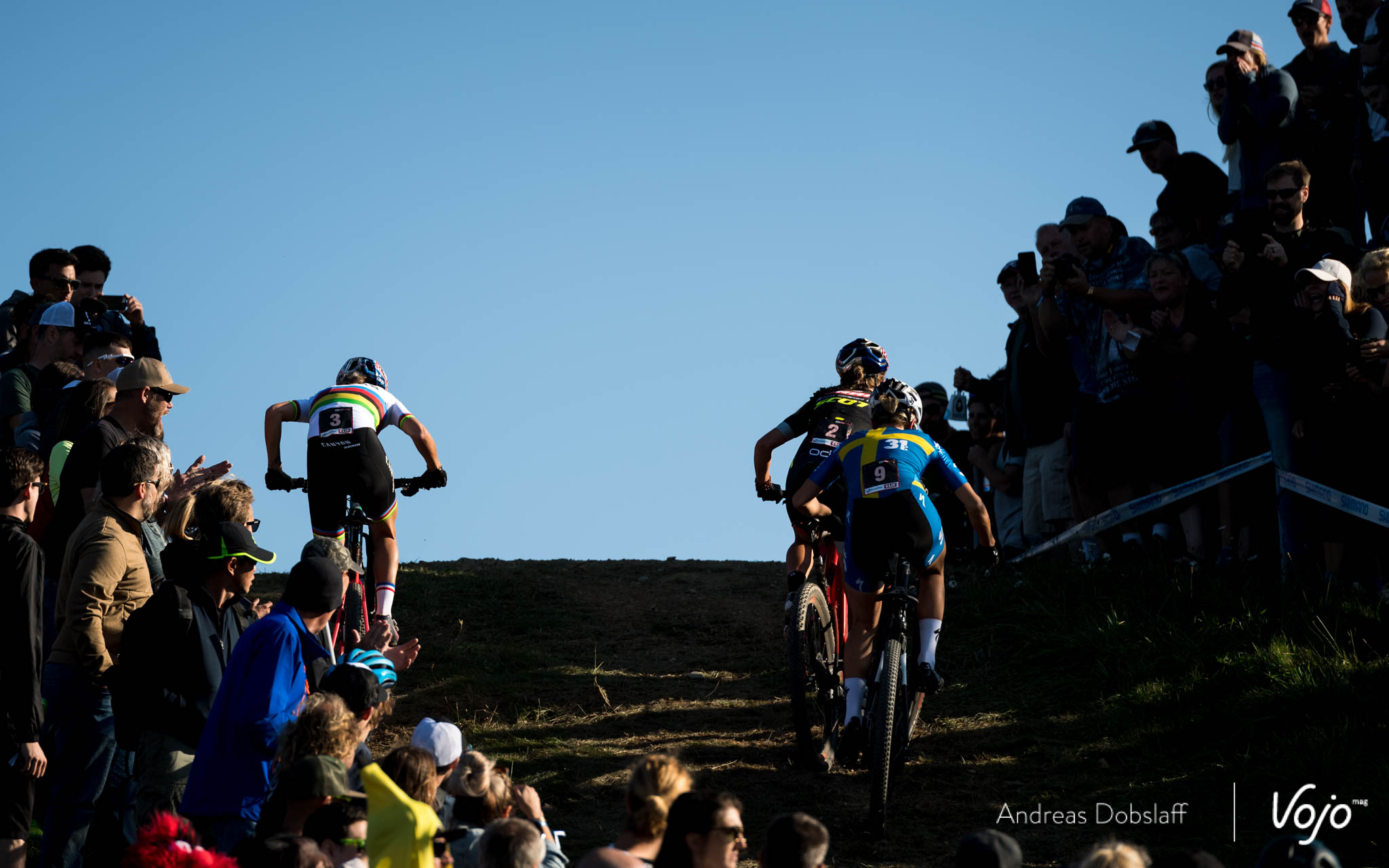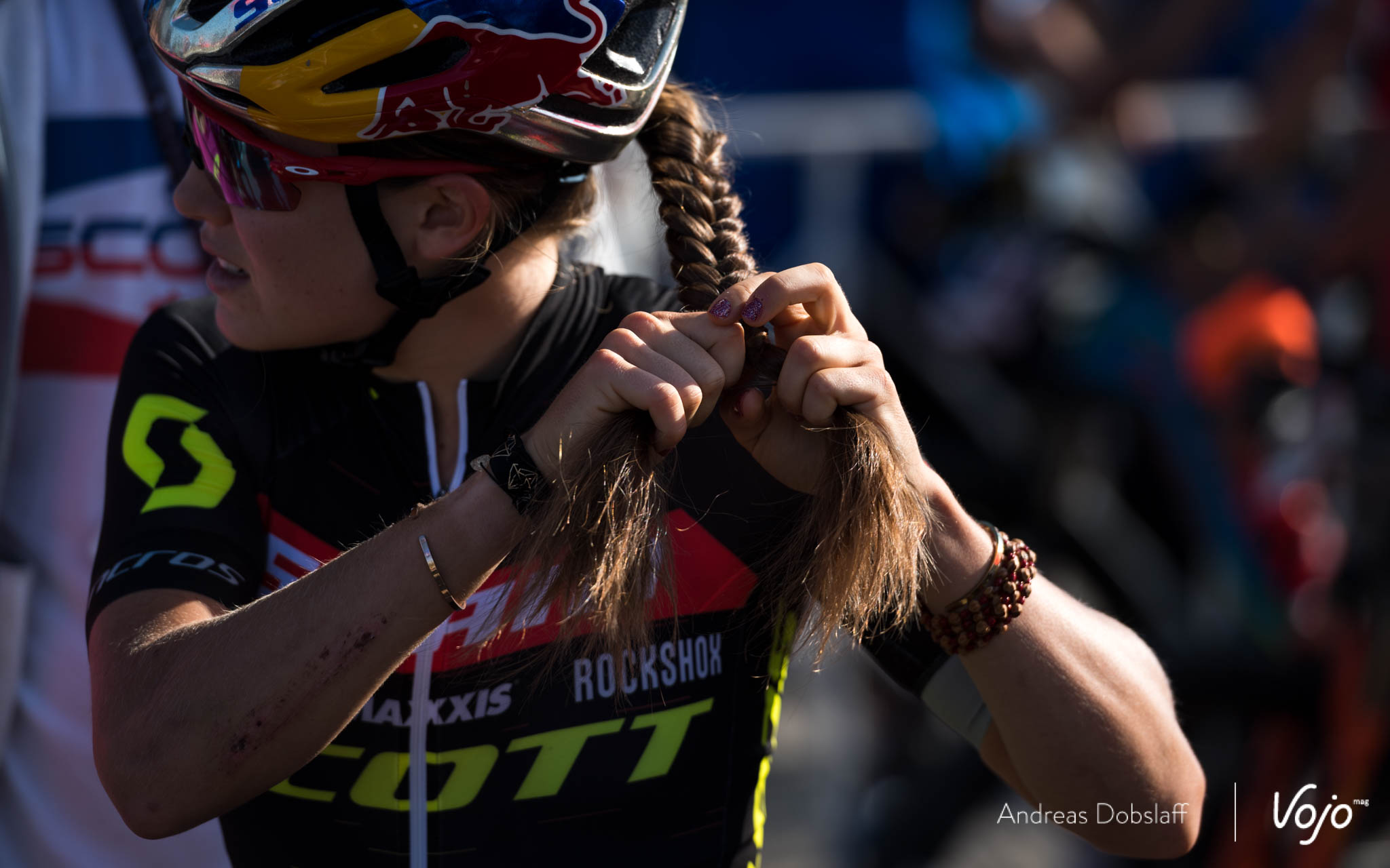 Kate Courtney est 3ème, devant Rebecca McConnell et Anne Terpstra. Le contrat est rempli pour l’américaine, qui avait perdu de sa superbe sur les dernières épreuves de coupe du monde mais semble avoir repris confiance. Jolanda Neff, seulement 16ème du Short Track, partira en 2ème ligne dimanche. Et surtout, elle ne compte plus que quelques points d’avance sur Courtney au général. La bataille s’annonce brutale !