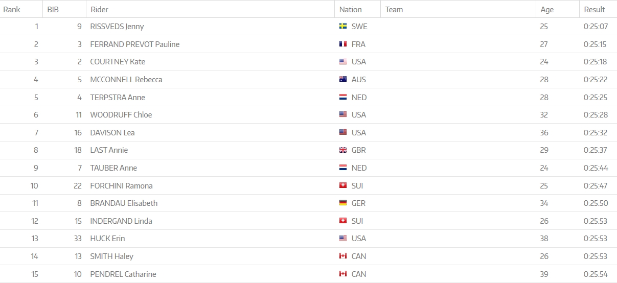 Jenny Rissveds en profite d’ailleurs pour rééditer son attaque à l’entame du dernier tour ! Mais cette fois, elle ne fait aucune erreur et plus personne ne recollera. Elle s’impose avec une belle avance sur Pauline Ferrand-Prévot !