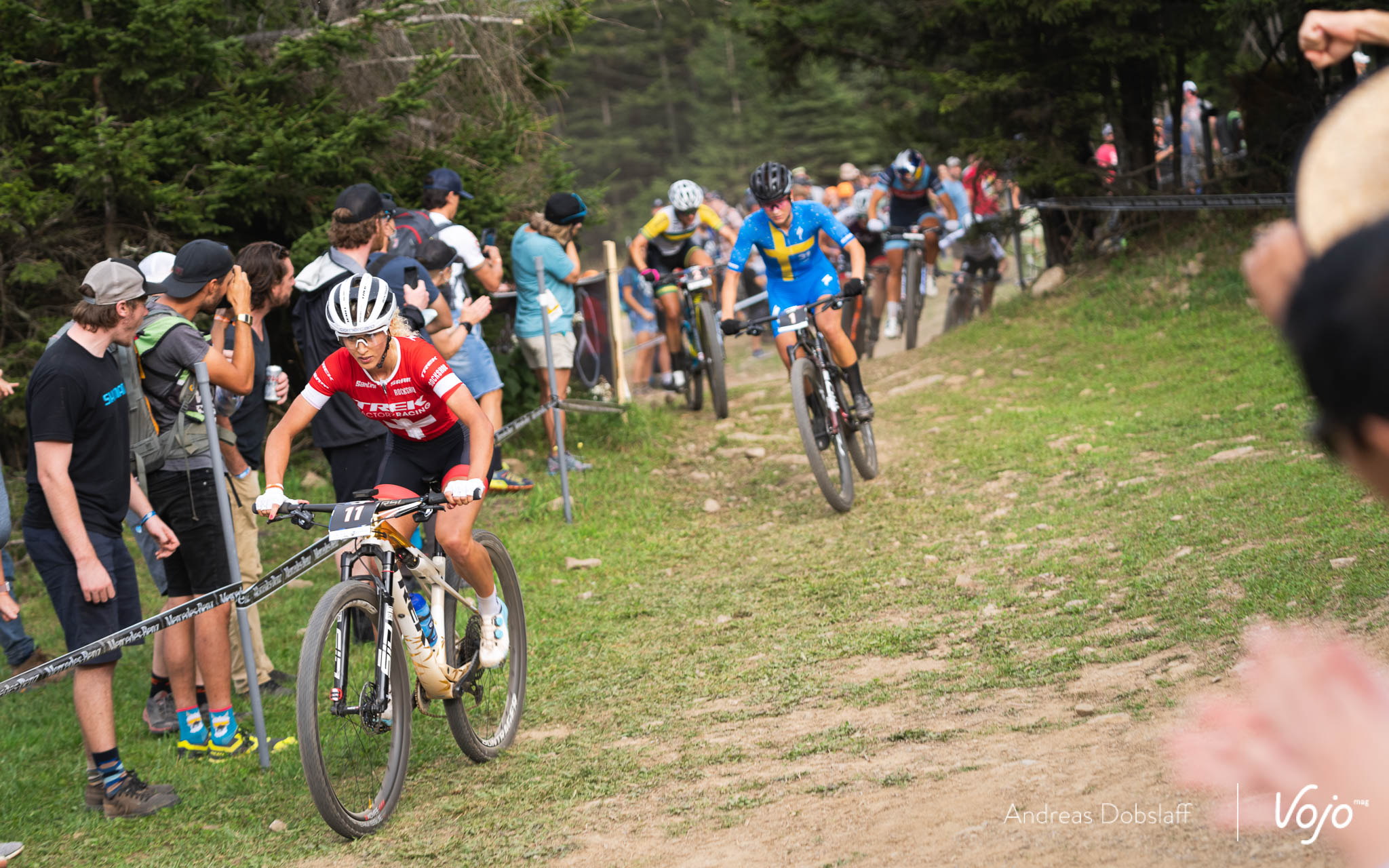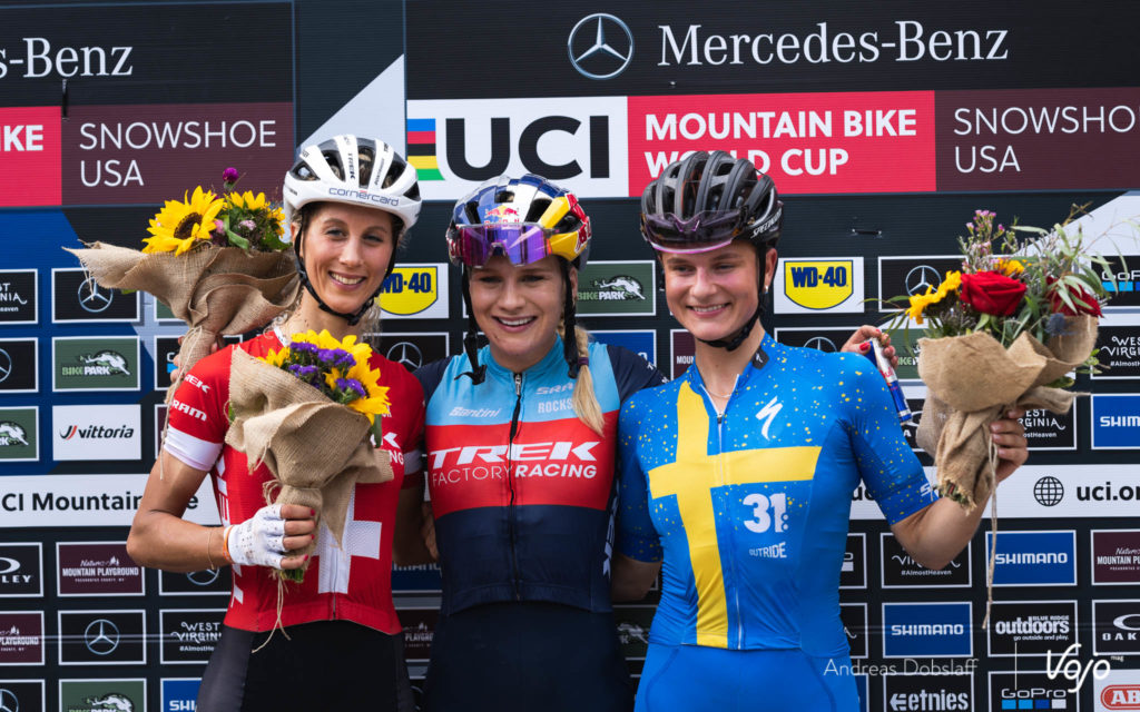 La Suédoise est d’ailleurs une des grandes animatrices de la course, qu’elle durcit à plusieurs reprises. Mais ses principales rivales, ainsi que Jolanda Neff et la championne du monde XCC Sina Frei, ont à chaque fois réussi à garder le contact.