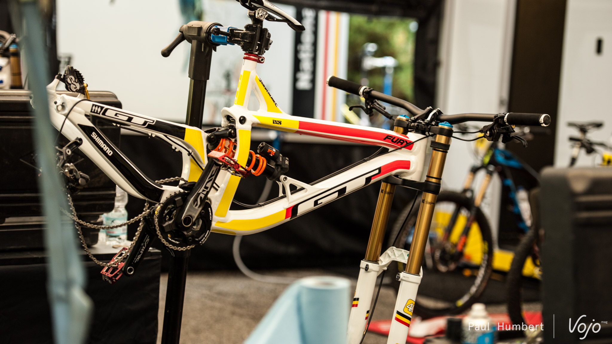 Martin Maes est le seul Belge engagé sur la descente. Son team Atherton Racing lui a réservé une petite surprise avec une déco à ses couleurs.