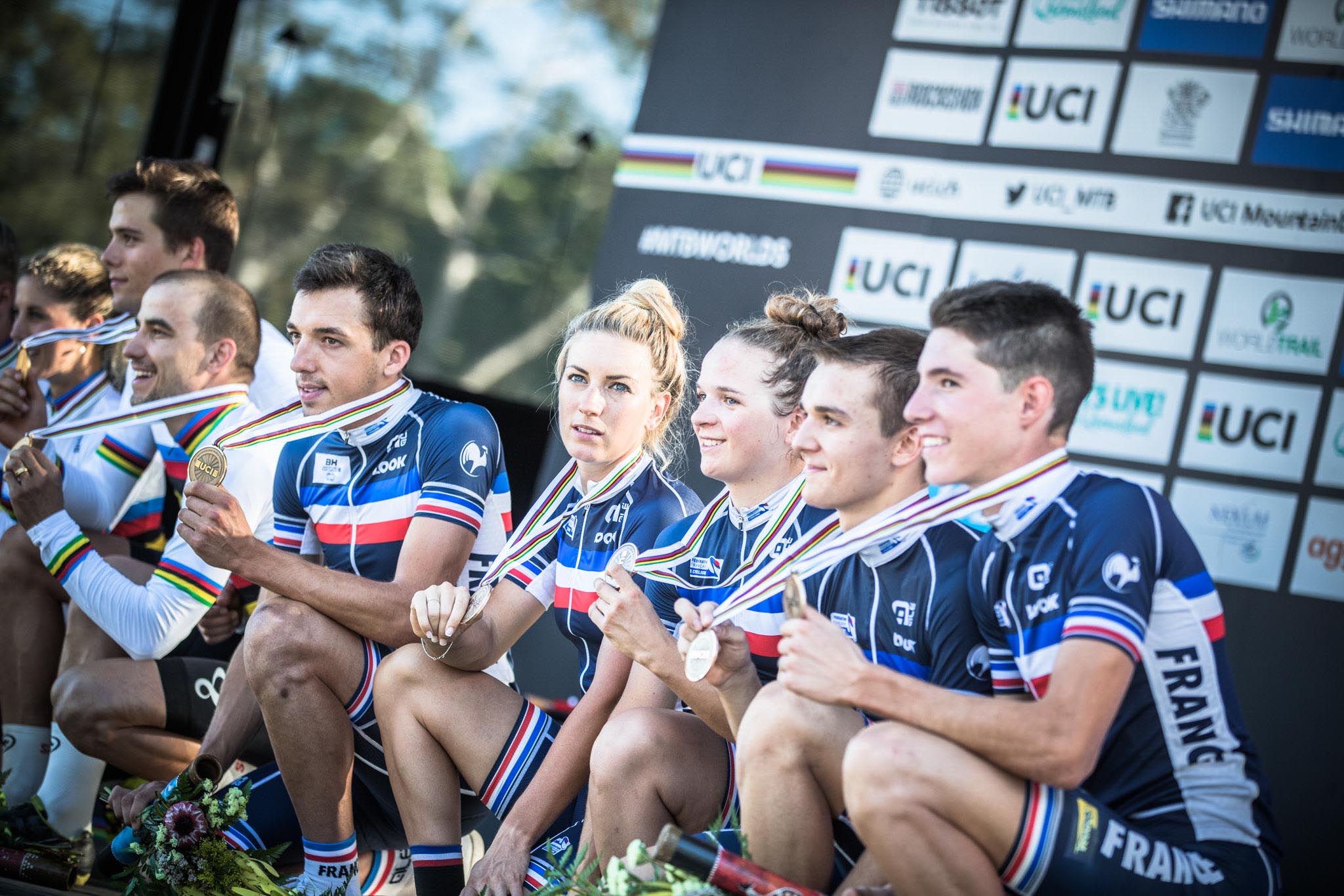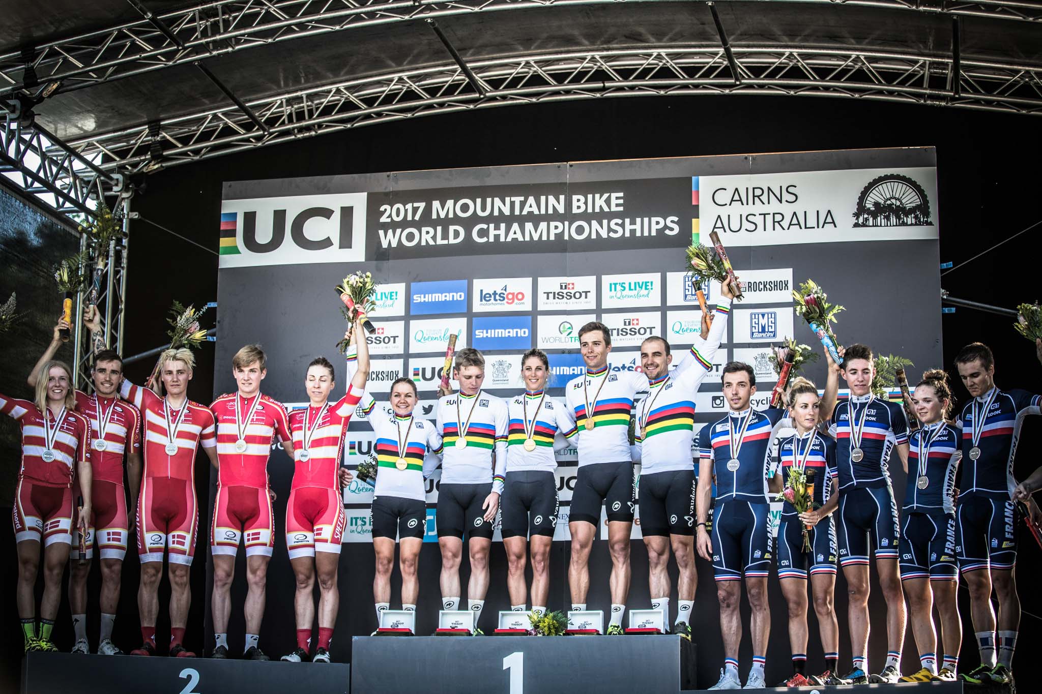 Jordan Sarrou, Mathis Azzaro, Pauline Ferrand-Prevot, Lena Gérault et Neïlo Perrin-Ganier terminent donc finalement sur la 3e marche du podium.