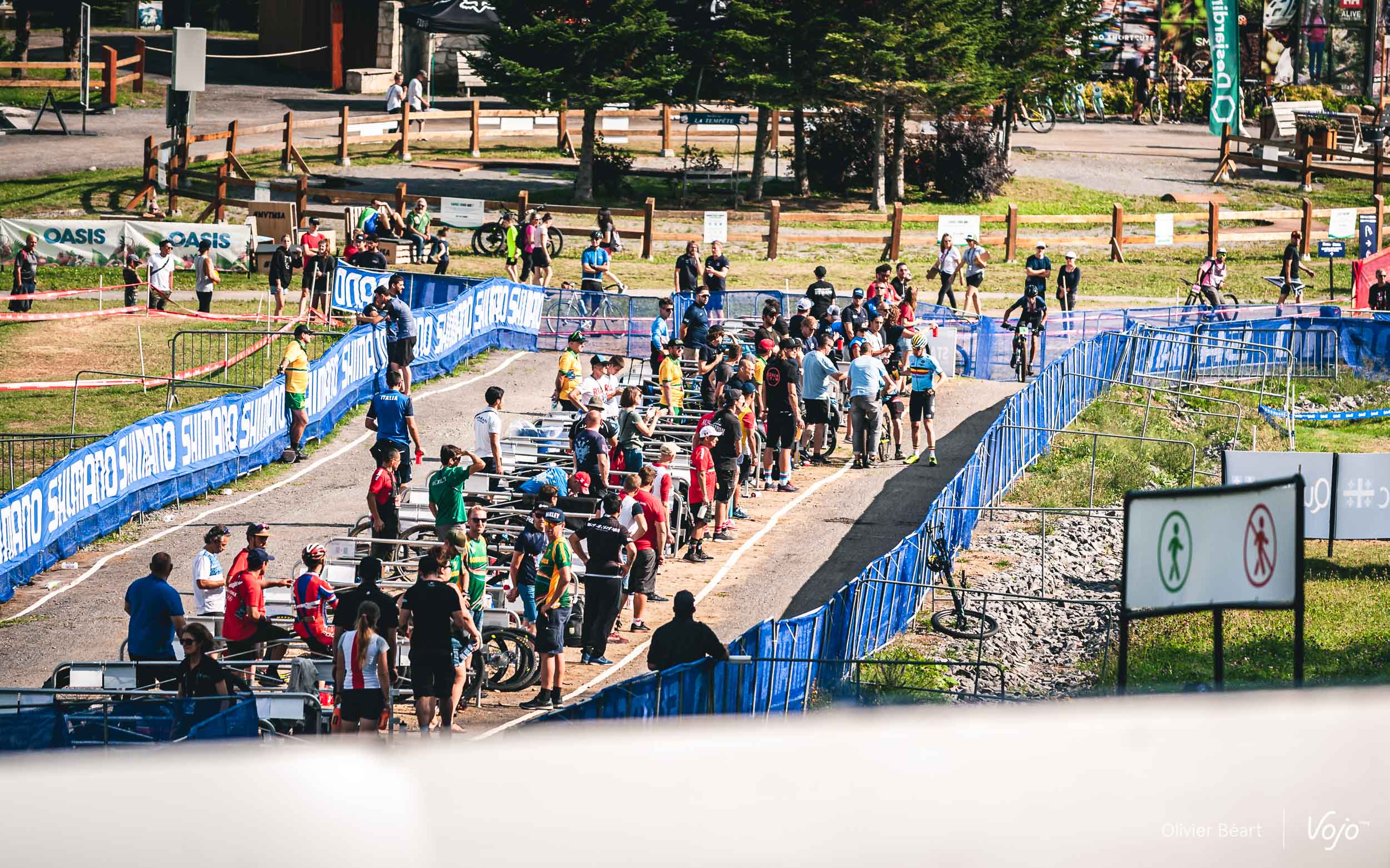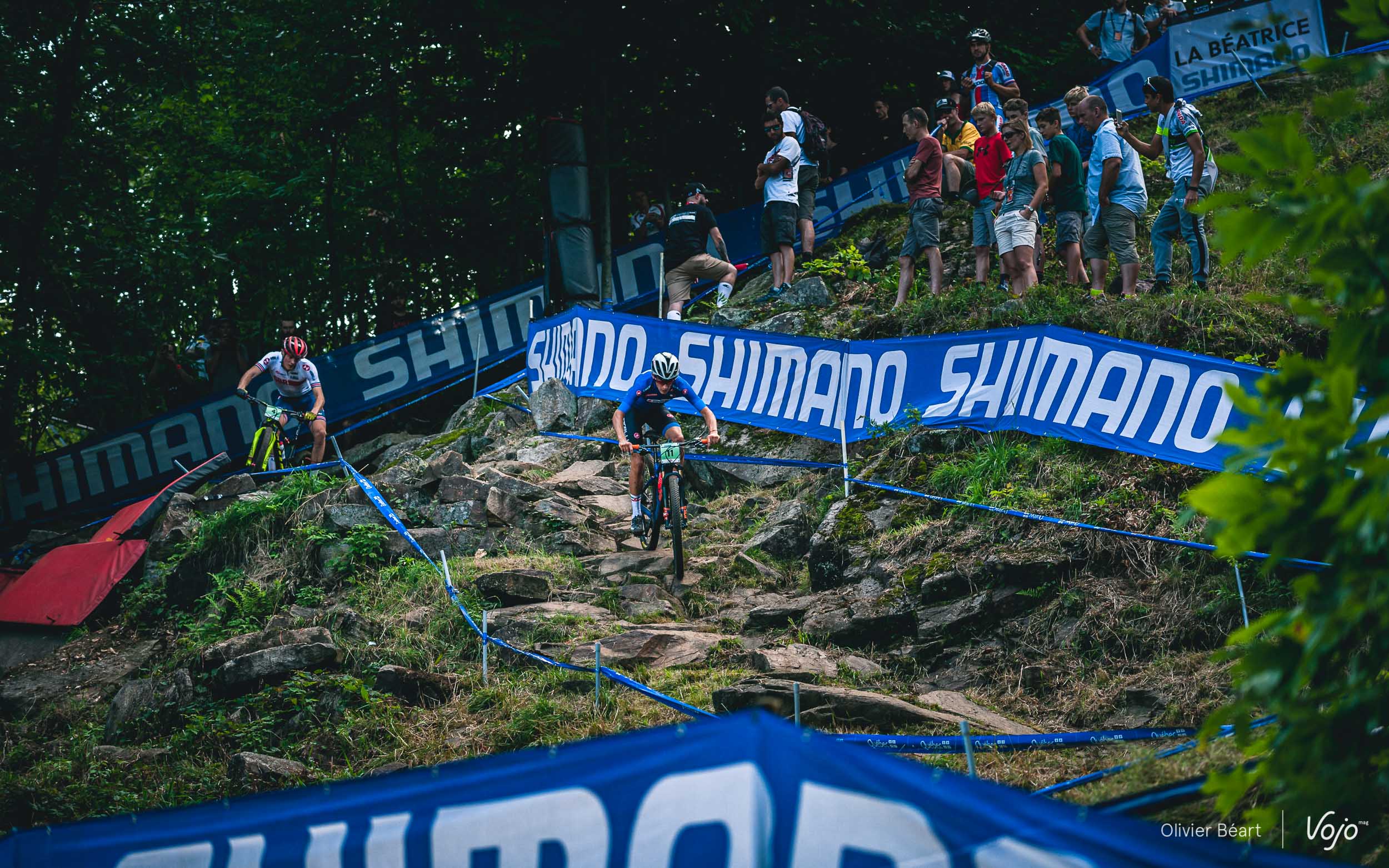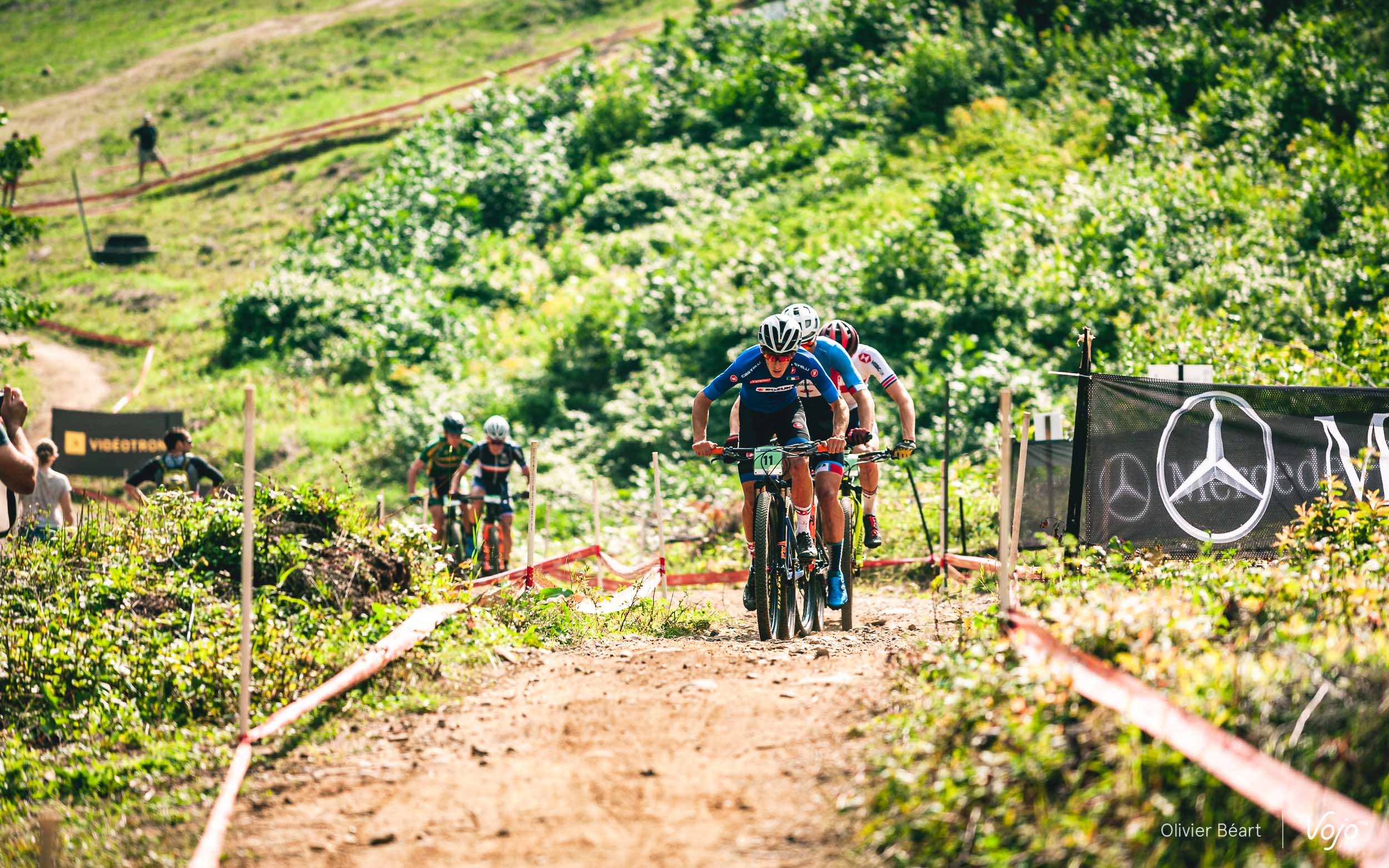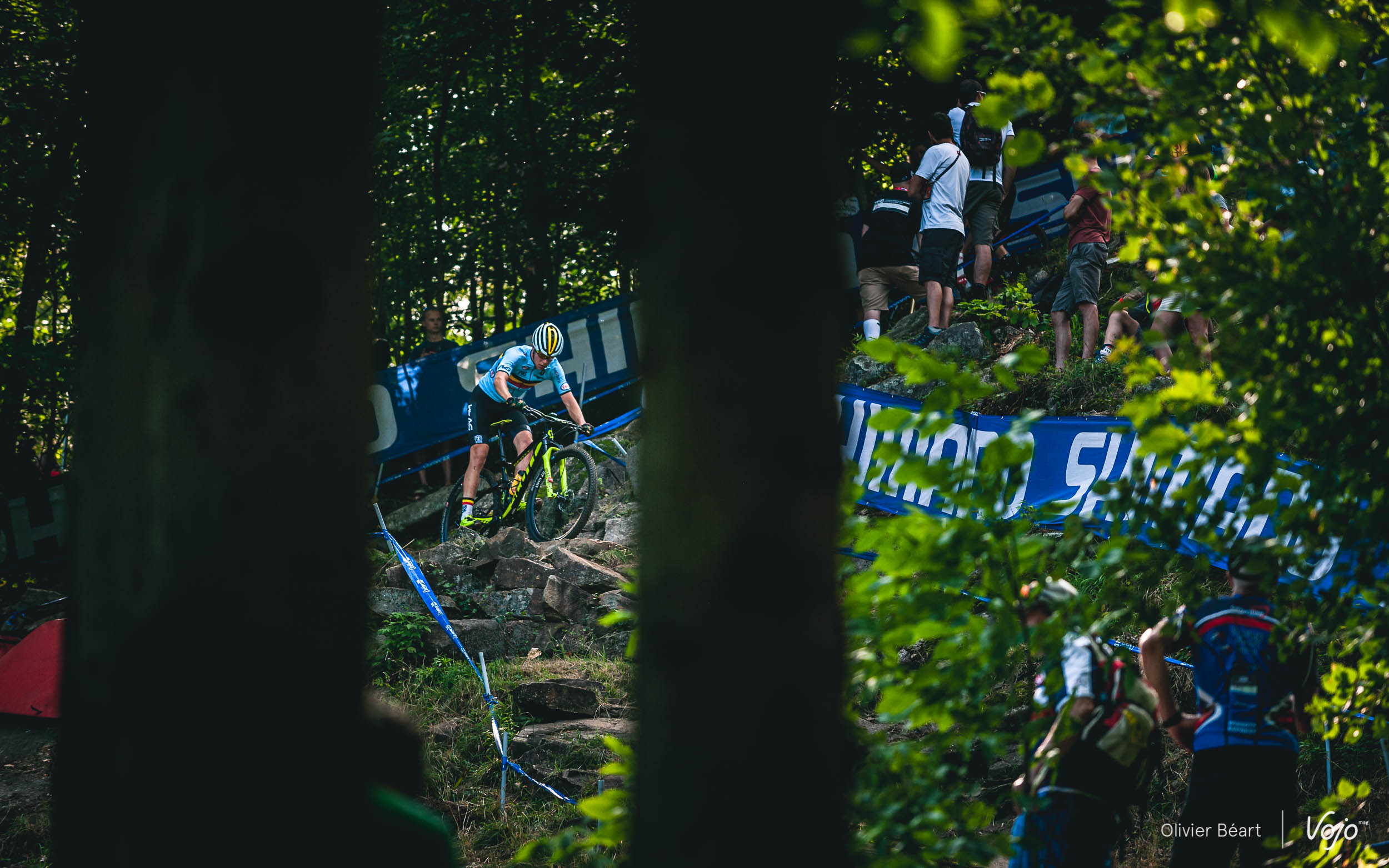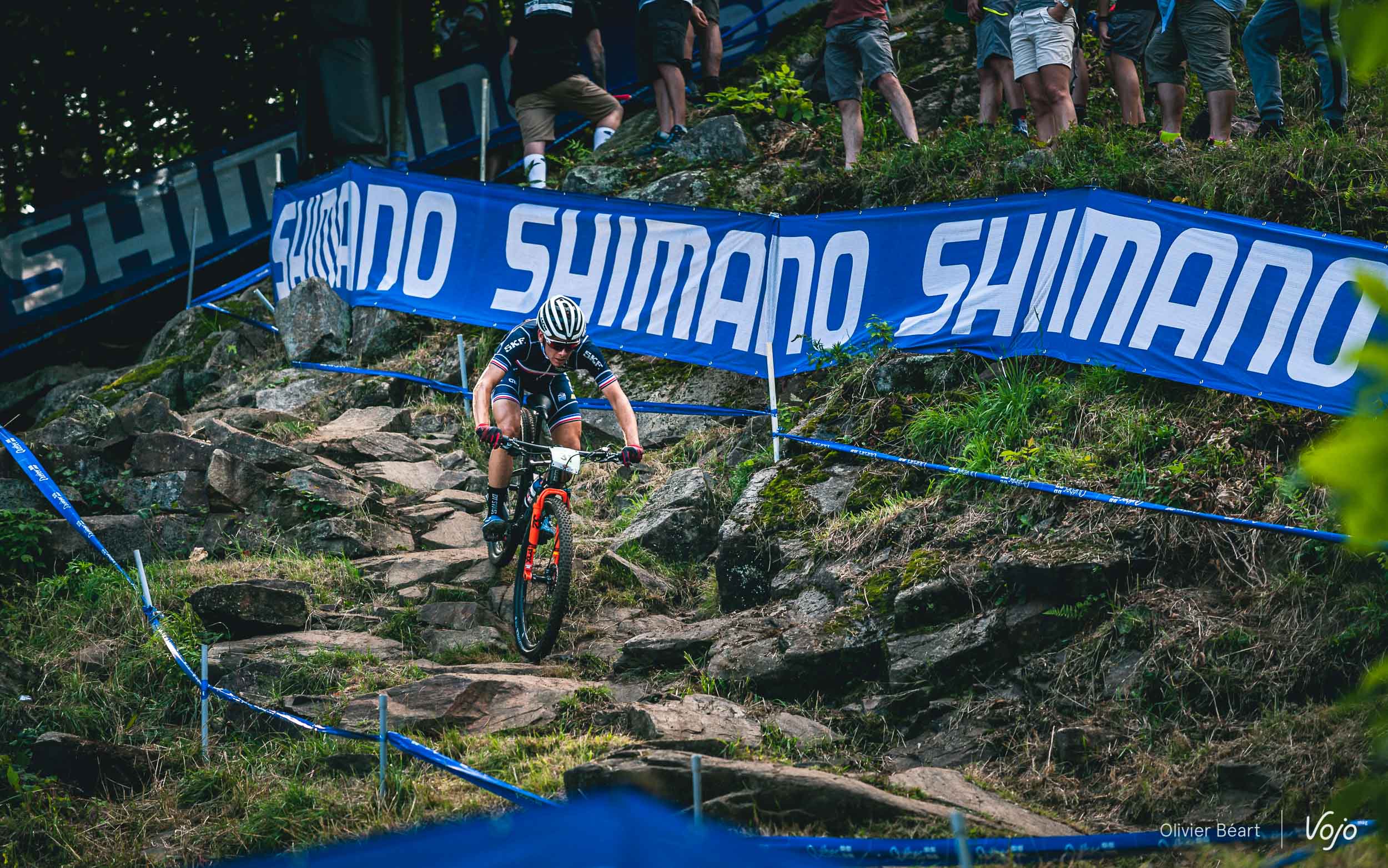 Et Lucas Martin est en 2e position ! On apprendra par la suite que le Britannique et l’Italien Vittone se sont touchés dans une descente. Lors de l’impact, Aldridge a involontairement abîmé le dérailleur de son rival, ce qui lui a fait perdre un temps précieux. Il terminera finalement 3e.