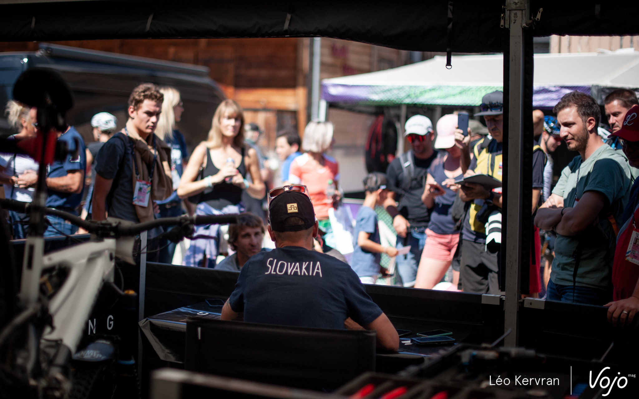 Aux Gets, il sera sans aucun doute l’attraction de la course e-bike, par ailleurs peu fournie (12 partantes chez les femmes, 36 chez les hommes). Lors de la conférence de presse donnée ce mercredi midi sous la tente du Specialized Factory Racing, le public ne s’y trompait pas. Curieux, journalistes, nombreux étaient celles et ceux qui s’étaient donné rendez-vous pour apercevoir le Slovaque et l’entendre expliquer la raison de sa présence dans la station haut-savoyarde.