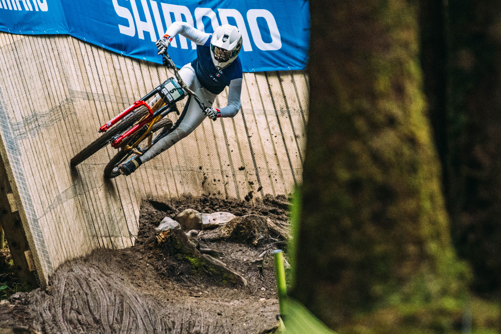 Ce vendredi à Fort William, il y avait les Néo-Zélandaises et les autres… Les kiwis ont en effet raflé toutes les places sur le podium ! Et l’une de ces trois-là était tout simplement intouchable sur la redoutable piste de Fort William : Erice van Leuven. Performante aussi bien en coupe du monde d’enduro qu’en DH cette saison, elle a survolé les débats dans ces championnats du monde en mettant notamment à profit son explosivité dans les sections plus physiques. Elle s’impose avec plus de 5 secondes d’avance sur ses deux compatriotes.