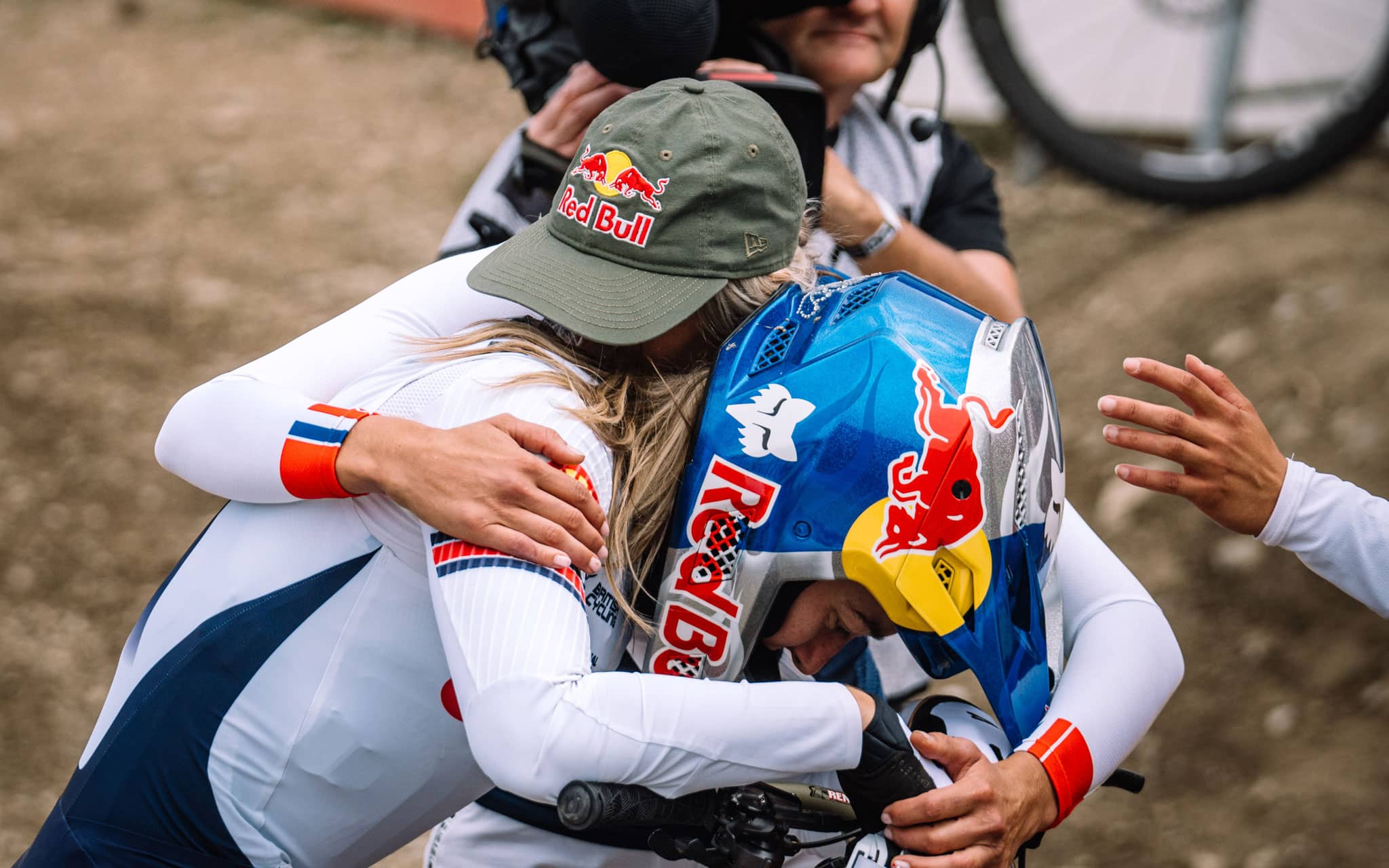 « C’était dur de retrouver de la vitesse après une si longue pause dans la saison« , expliquait la championne du monde quelques instants après l’arrivée. « Je n’étais pas dans le rythme aux championnats d’Europe. J’avais peur de ne plus savoir comment piloter un vélo… Je ne me pensais pas capable de faire ça aujourd’hui. Trois titre de suite, c’est dingue ! Le run, c’était à fond. C’est effrayant, je n’aurais pas pu aller plus vite. Les autres filles poussent tellement et les chronos étaient si serrés, personne n’est dans la retenue en ce moment. C’est fou ! »