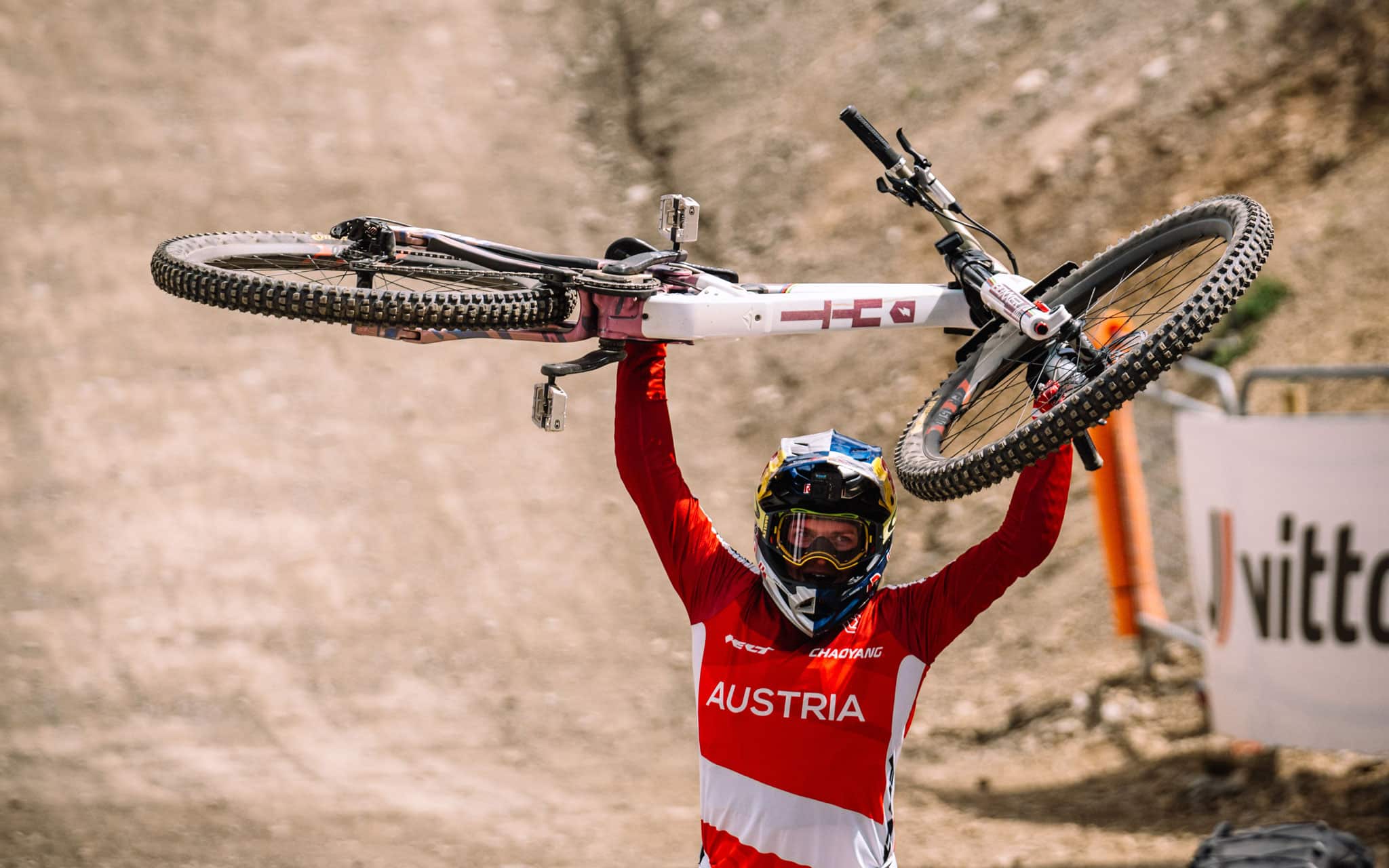 Dakotah Norton est le premier des deux pilotes qui peuvent encore priver un Français du maillot arc-en-ciel. Mais une erreur en fin de piste alors qu’il est une demi-seconde devant Loris Vergier va mettre fin à tous ses espoirs. Cruel. L’autre, c’est Andreas Kolb. Pas de crash pour l’Autrichien, juste pas assez de vitesse. C’est donc officiel : un Français sera champion du monde puisqu’on n’attend plus que Loïc Bruni sur l’aire d’arrivée alors que Loris Vergier est dans le hot seat. Un triplé bleu-blanc-rouge est même possible puisque Coulanges occupe alors la 2e place provisoire !