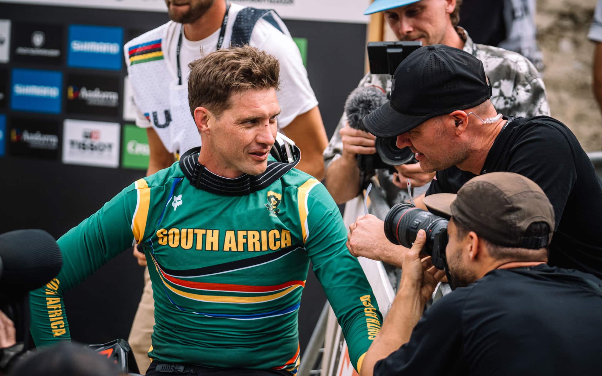Laurie Greenland est le premier d’entre eux, mais comme les 9 pilotes avant lui il bute contre le chrono d’Angel Suarez. Même chose pour le GOAT Greg Minnaar, qui espérait sans doute un peu mieux pour ses 28e (!) et derniers championnats du monde (il terminera 23e), ainsi que pour Matt Walker juste après le Sud-Africain.