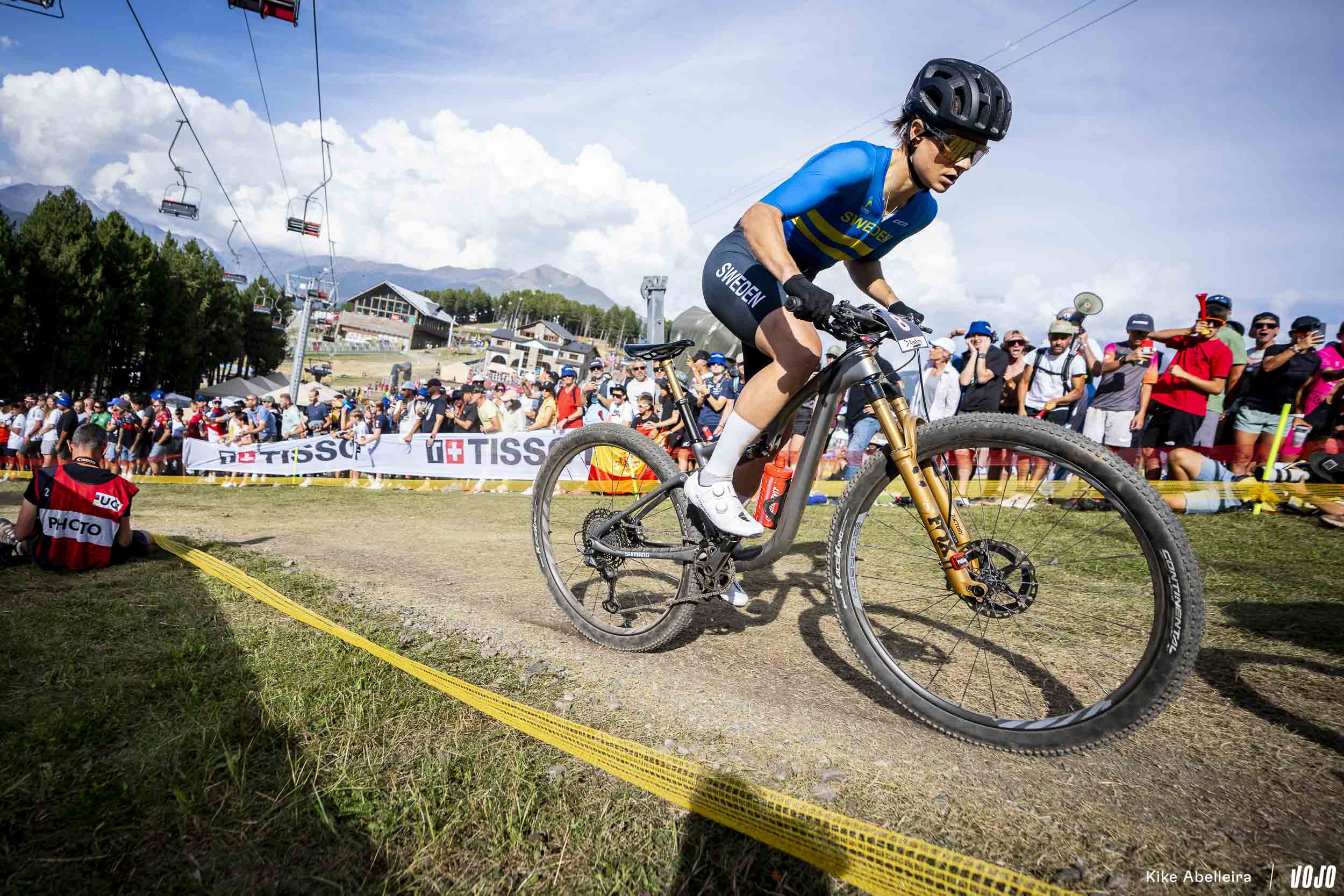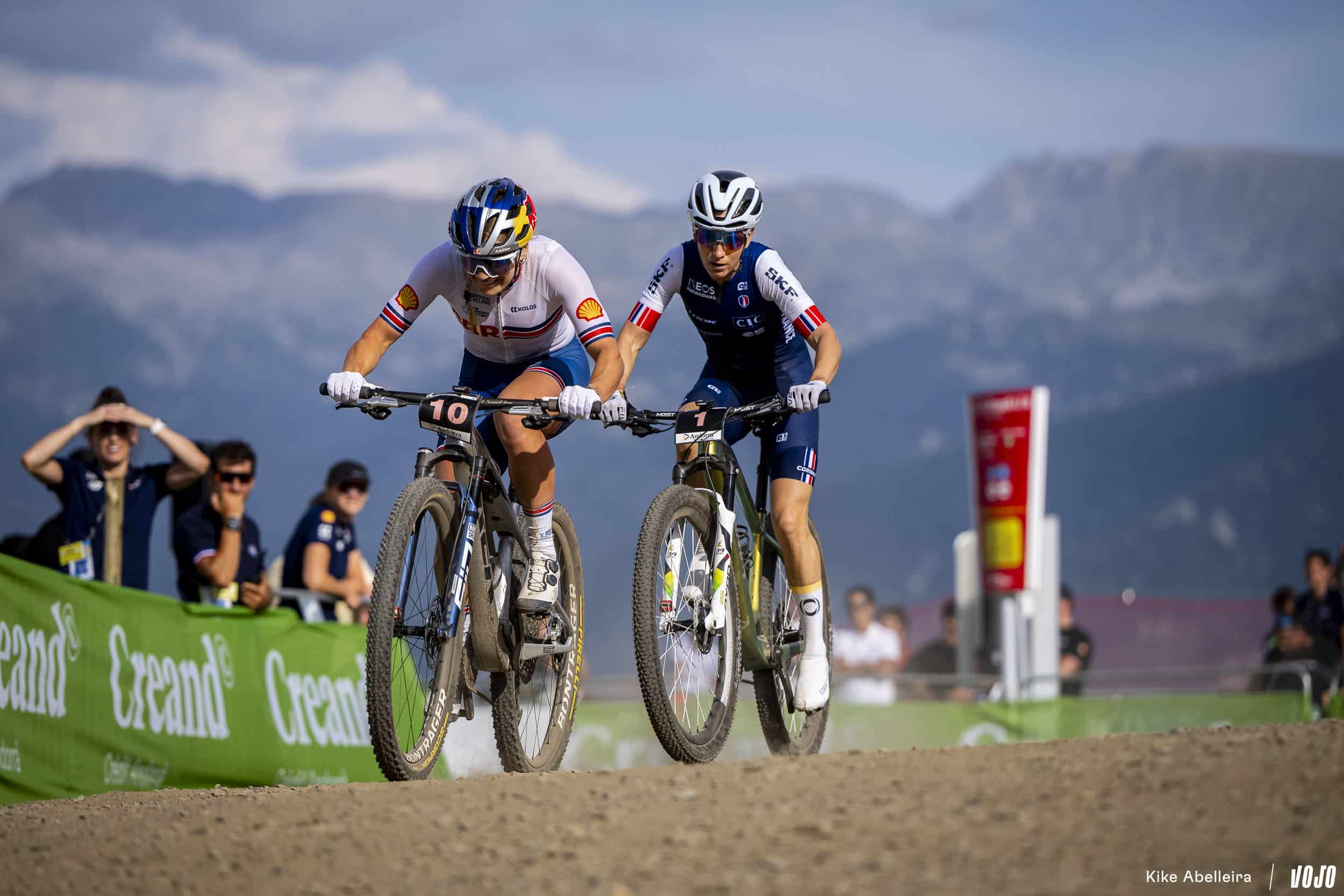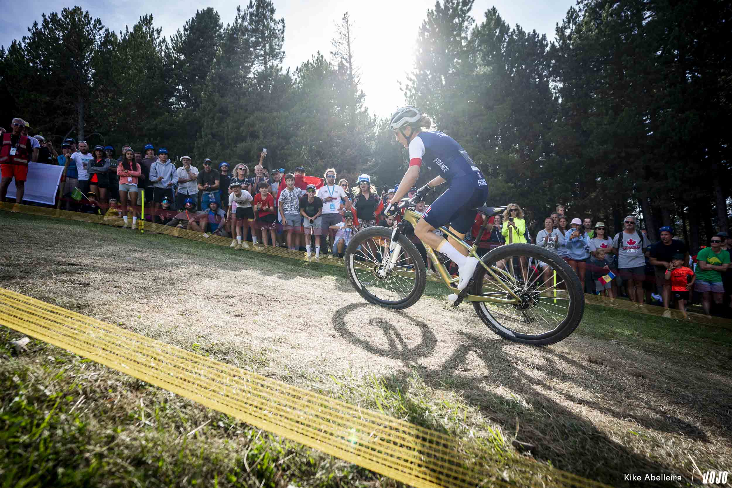 La Française a pris très tôt les commandes de la course, d’abord en compagnie de Jenny Rissveds. Mais le duo a vu revenir Evie Richards à la mi-course, après que la Britannique se soit débarrassée de Puck Pieterse, visiblement pas tout à fait à l’aise sur le tracé andorran.