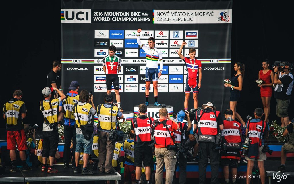 Thomas Bonnet ramène un nouveau maillot arc-en-ciel à l’équipe de France après avoir dominé la course Junior des championnats du Monde de Nove Mesto… et avoir été le premier surpris de son titre une fois la ligne franchie car il pensait devoir encore continuer un tour ! Le Suisse Albin Vital prend la 2e place devant le Norvégien Tobias Halland Johannssen. Retour sur l’épreuve Junior avec nos plus belle images et des news des autres Français engagés, ainsi que du seul coureur belge.