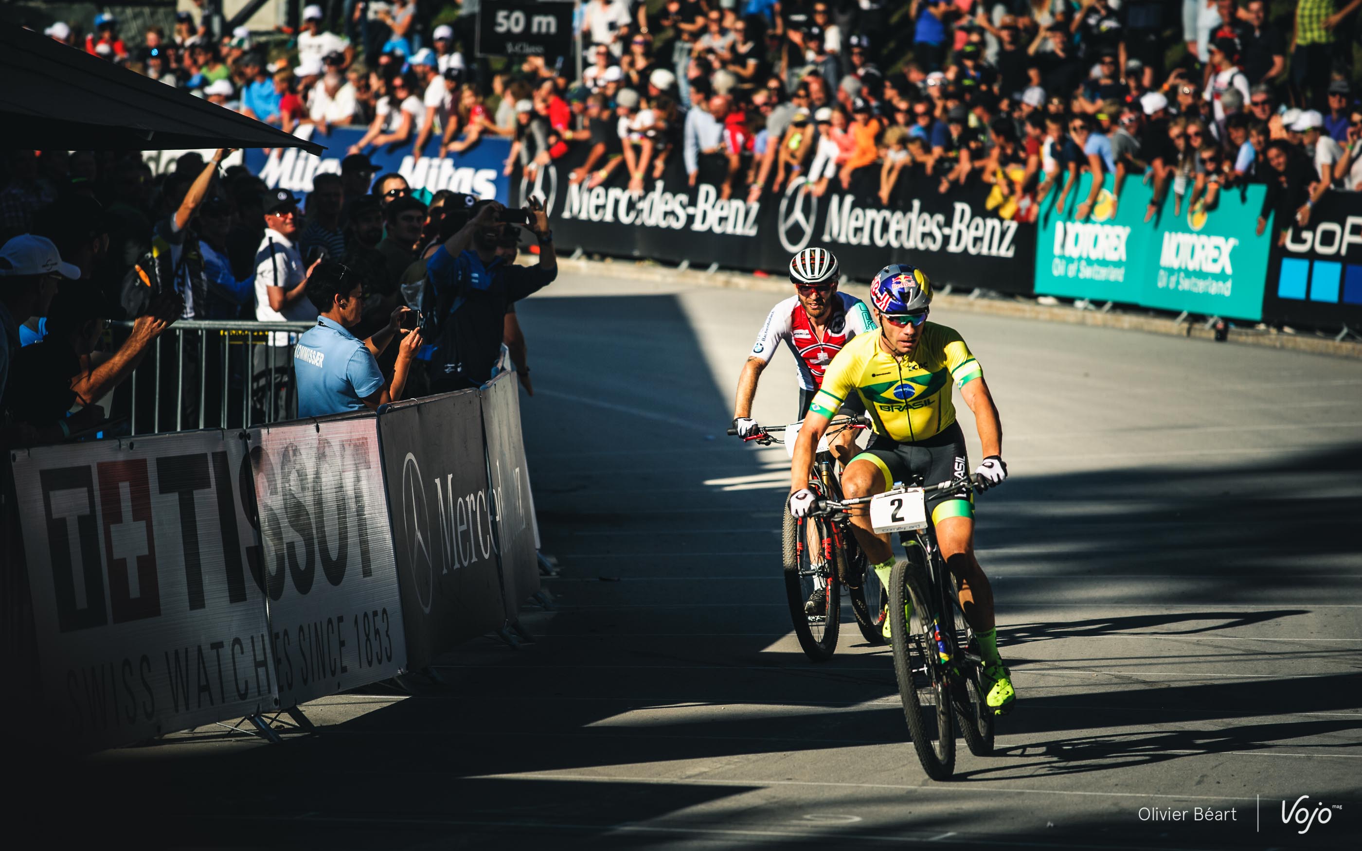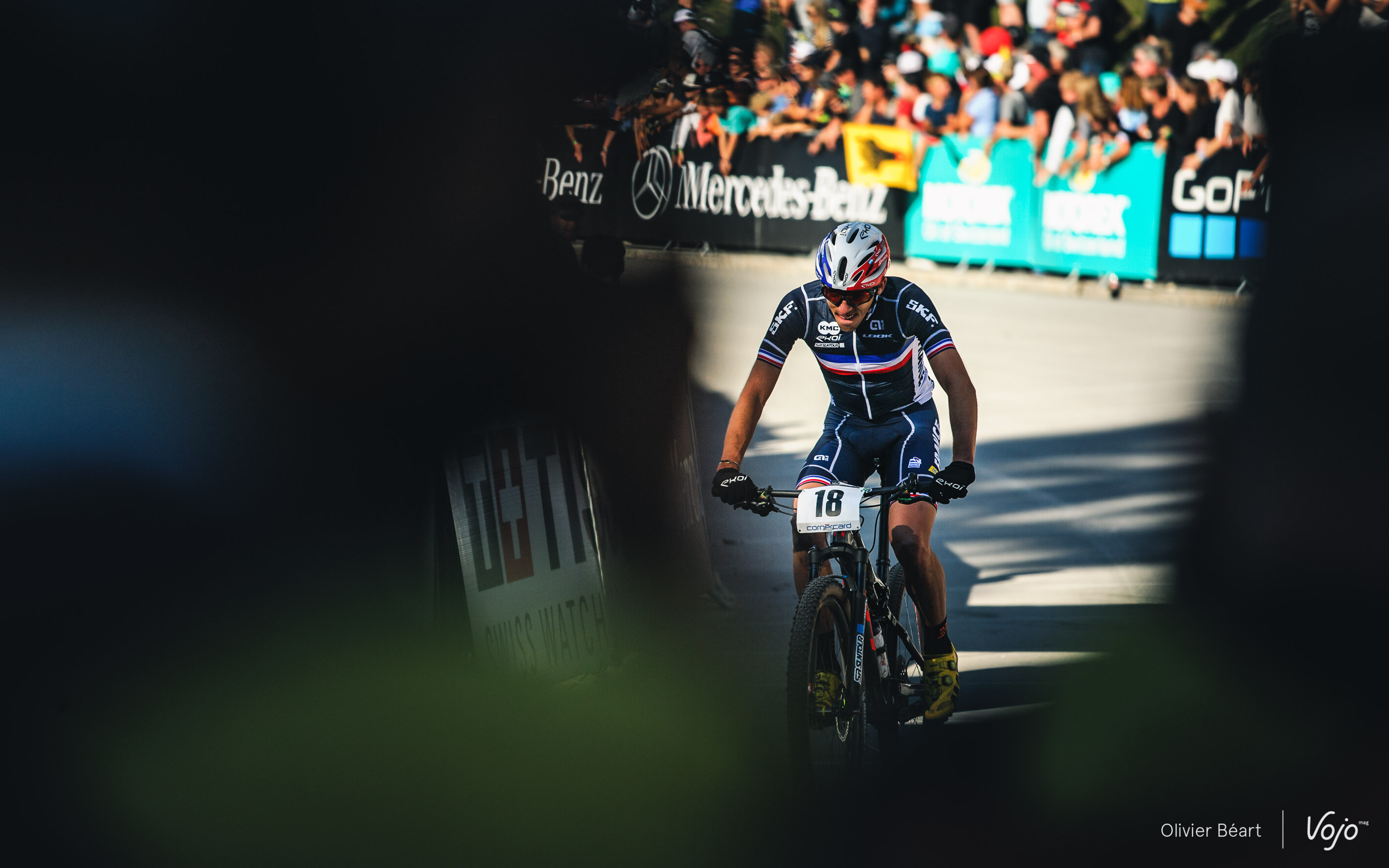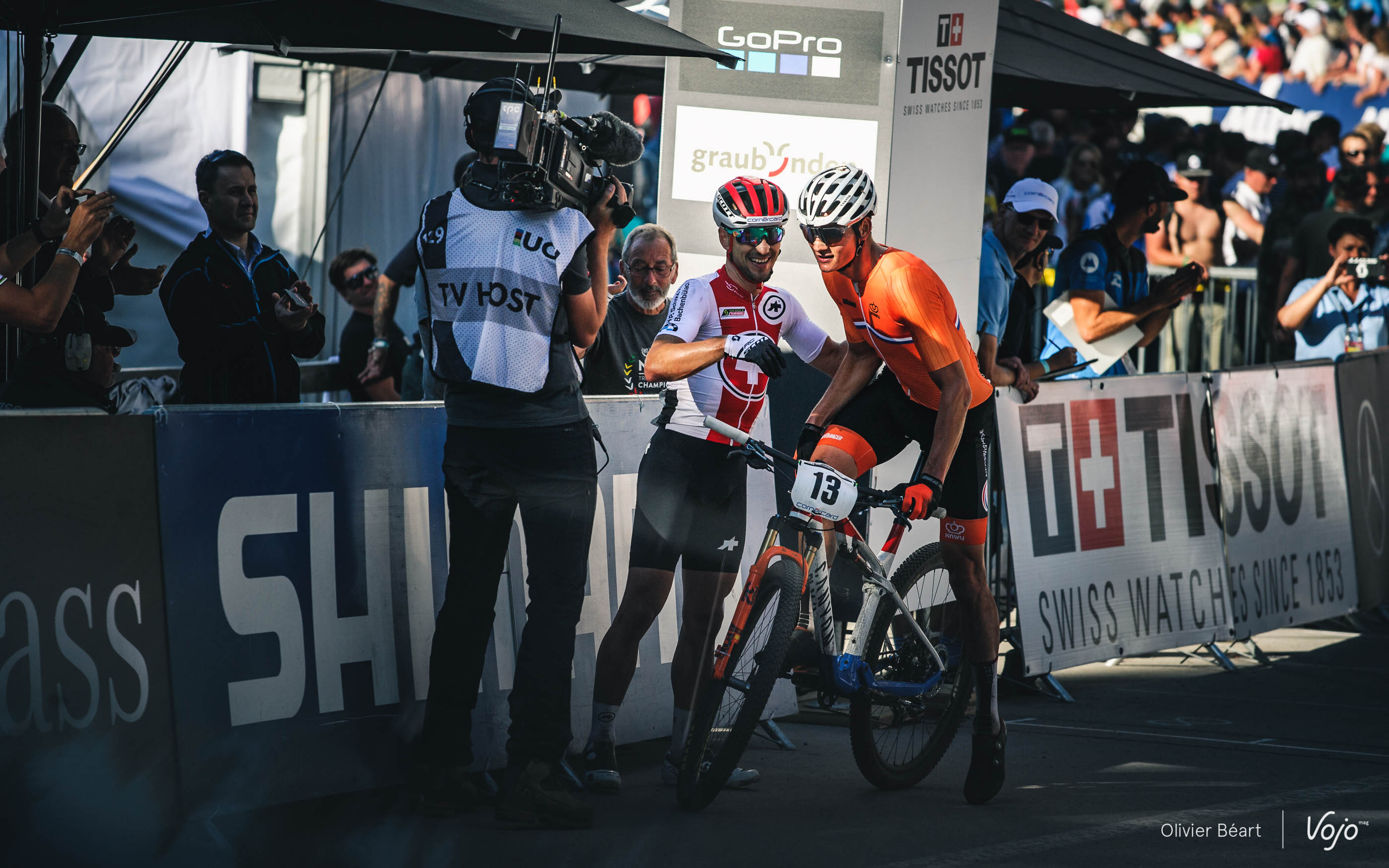 Il aura fallu attendre l’avant dernier tour pour voir Nino Schurter s’envoler pour un nouveau titre de Champion du Monde, le septième exactement. Après avoir tenu jusque-là dans sa roue, Gerhard Kerschbaumer décroche l’argent et Mathieu Van Der Poel complète le podium pour sa première participation à un Mondial VTT.