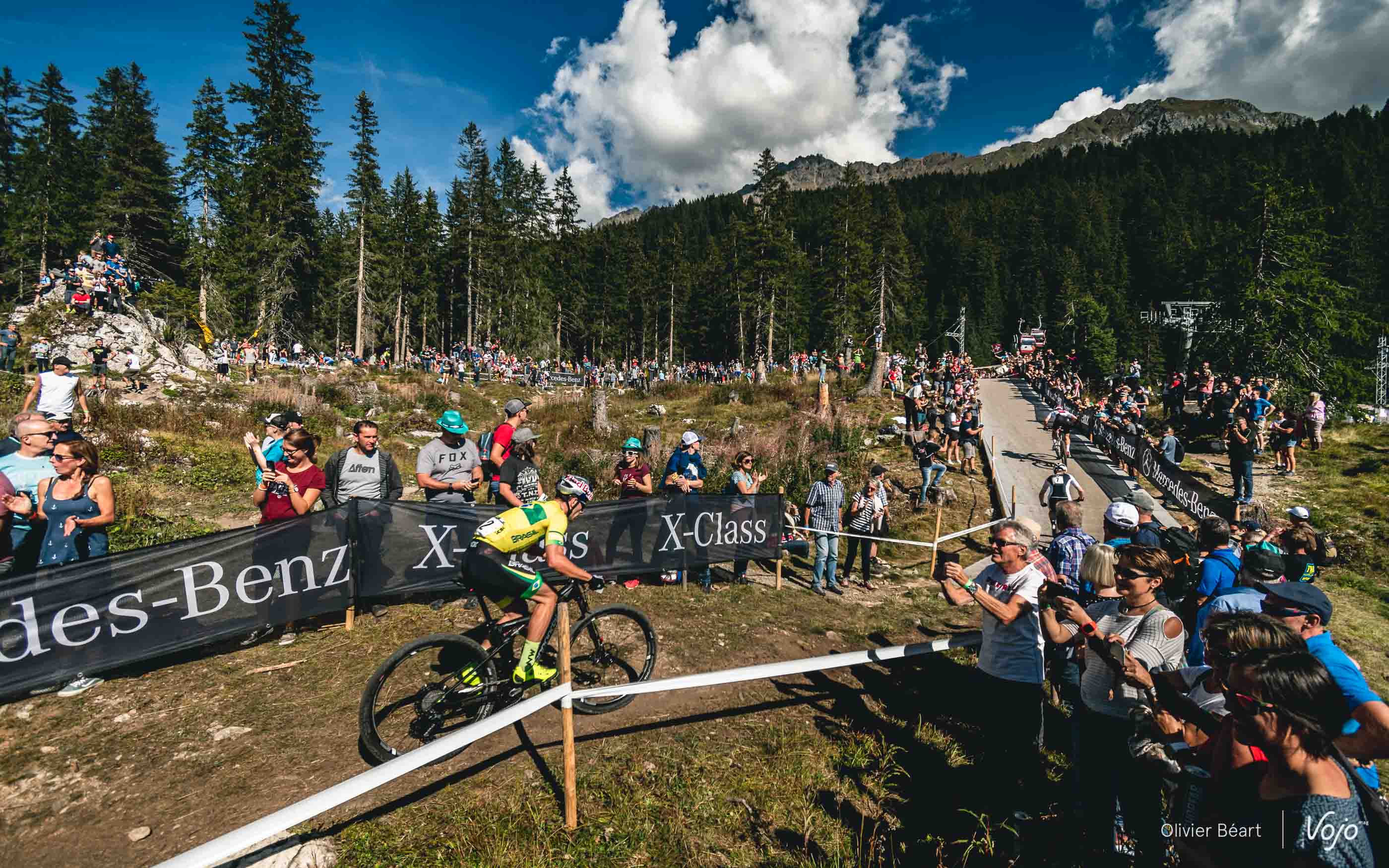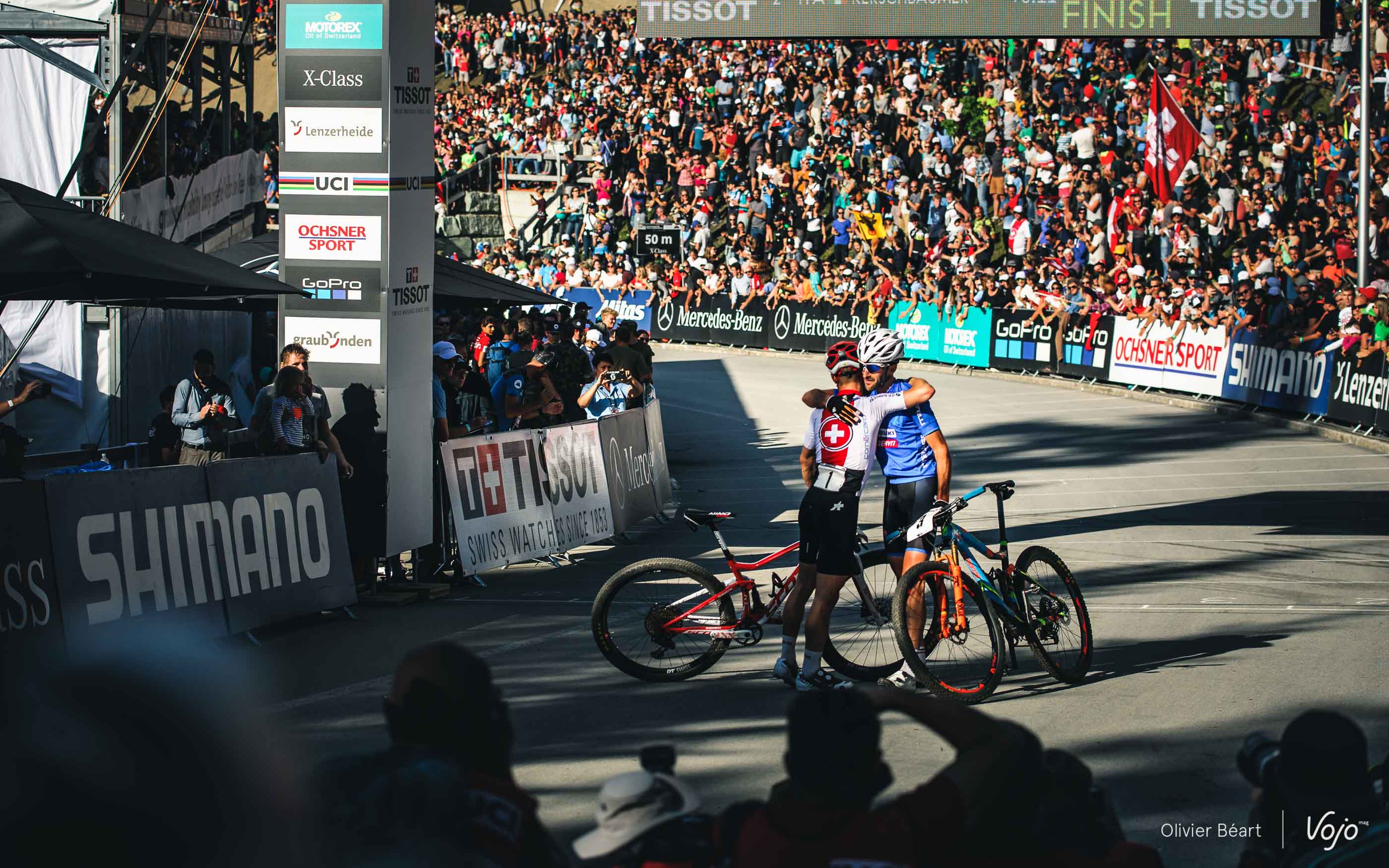 Il terminera donc l’ultime tour de la plus belle des manières : il sprinte dès qu’il le peut, assure dans les parties techniques et arrive à savourer dans la dernière ligne droite du parcours le bruit de la foule venue dizaines de milliers acclamer son champion. Nino Schurter est à nouveau Champion du Monde de cross-country et ce nouveau titre est amplement mérité.