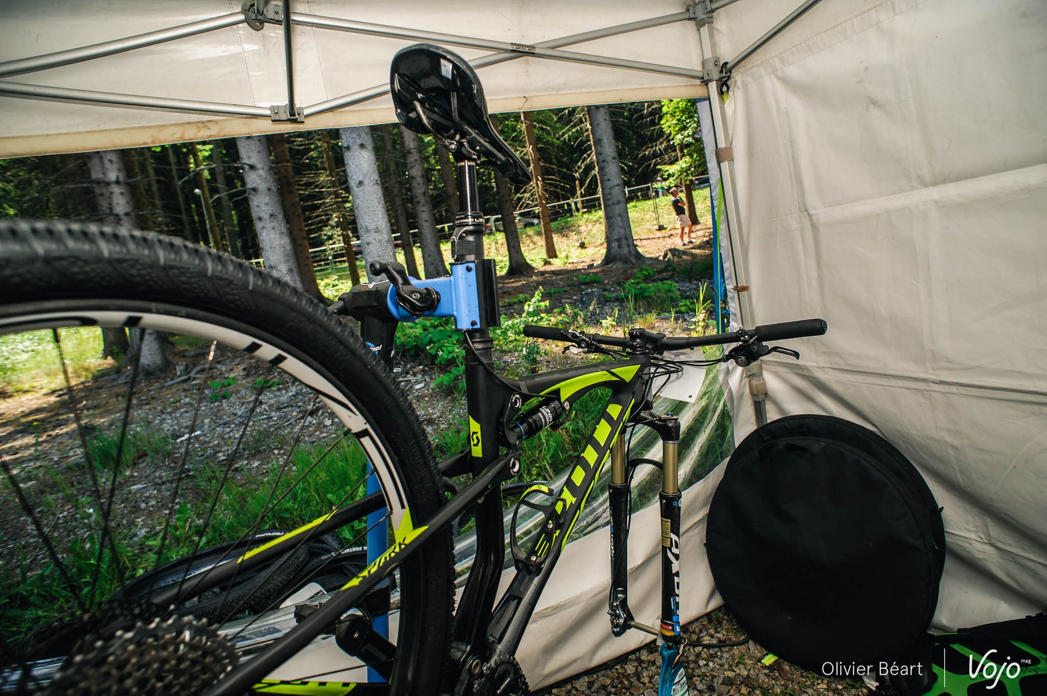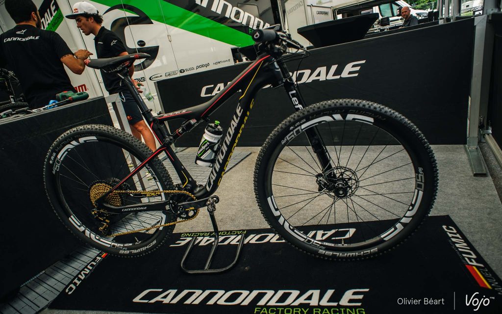 Nous avons déjà eu l’occasion de vous présenter en détail le nouveau Scott Spark RC suite au lancement presse auquel nous avons assisté. Voici les détails techniques et notre première prise en main. Par contre, nous avons noté un détail intéressant sur le vélo roulé par Nino Schurter lors de ces championnats du Monde : il était en pneus !