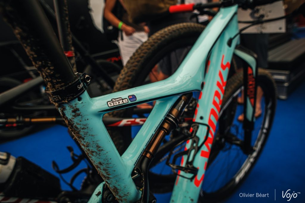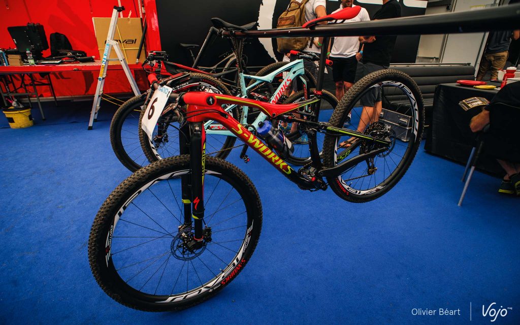 Si les Specialized Epic aperçus sur le stand de la marque à Nove Mesto ne semble pas évoluer fondamentalement sur le plan technique, notre petit doigt nous dit que les nouveaux coloris des vélos de Sam Gaze (ici en photo), Simon Andreassen, Jaroslav Kulhavy ou encore Annika Langvad préfigurent la collection 2017.