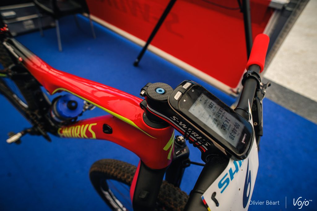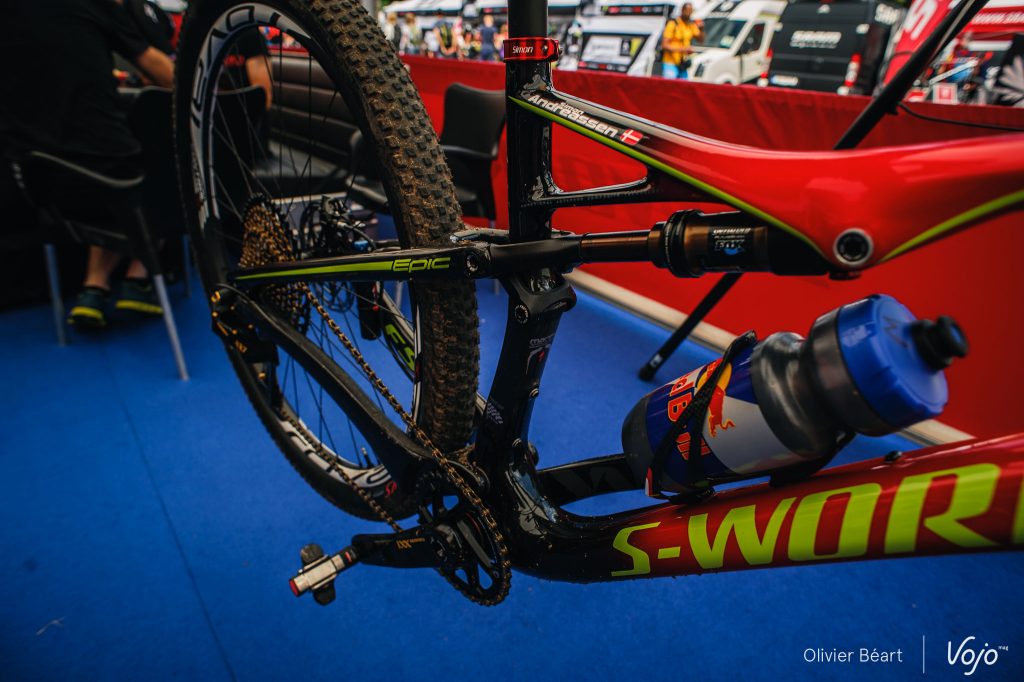L’arrière du vélo nous semble aussi un peu différent de l’Epic World Cup actuel. Passerait-il au Boost ? Nous en saurons plus d’ici quelques semaines. Pour les voir en action, rendez-vous dans nos portfolios de la course Espoir Hommes et Dames.