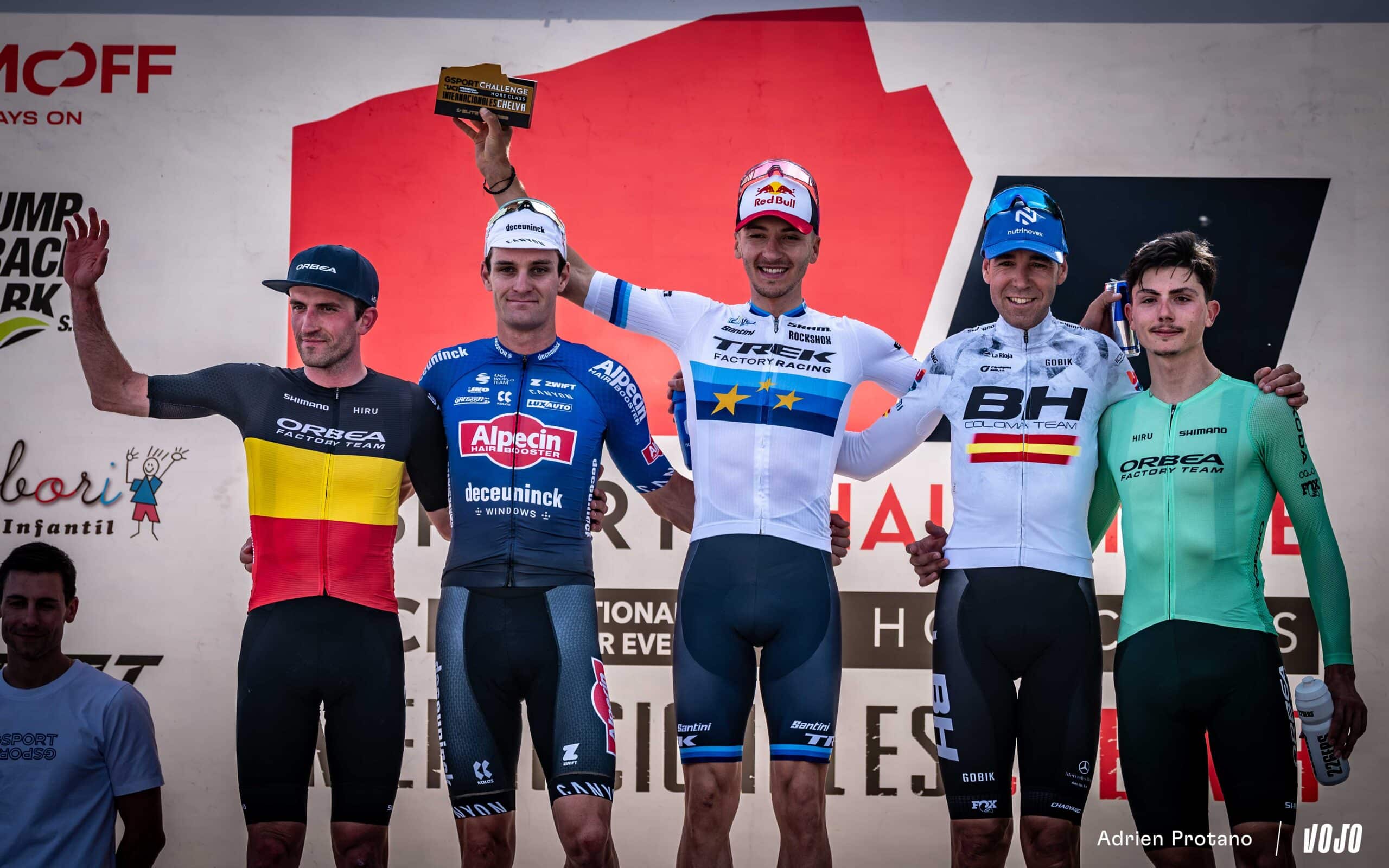 Tir groupé pour l’Orbea Factory Team ! Pierre de Froidmont vient compléter le podium, suivi de son coéquipier David Campos.