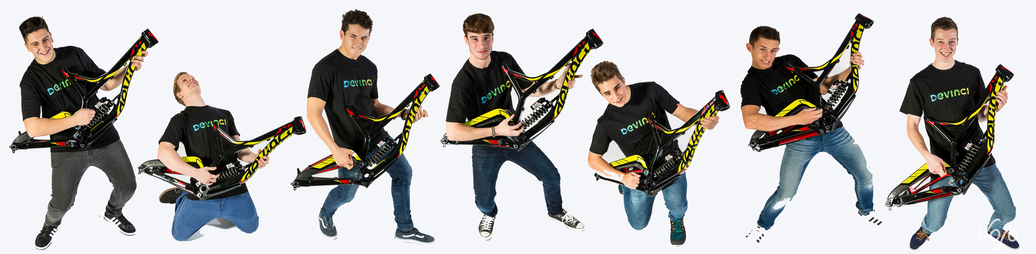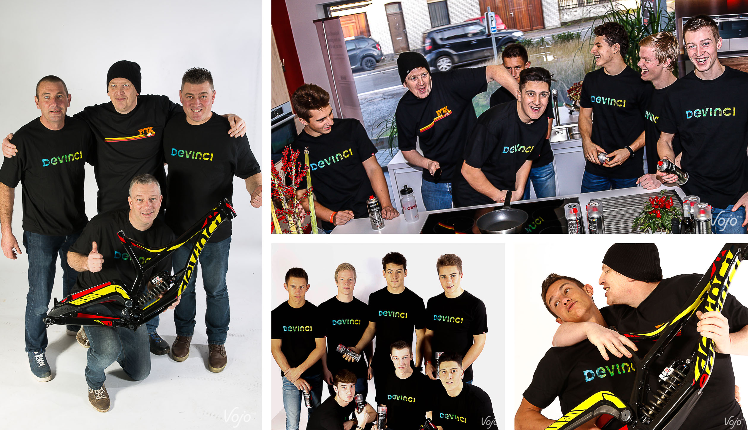 Comme le nom du team l’indique, les coureurs rouleront sur des vélos DeVinci grâce au soutien de Sabma, l’importateur Benelux et France de la marque canadienne. Ils seront équipés du cadre Wilson 2016. Leurs autres principaux partenaires vélo sont : Kenny-Racing, Reverse Components, Schwalbe, FiveTen, Motip, Bliss et No Tubes.