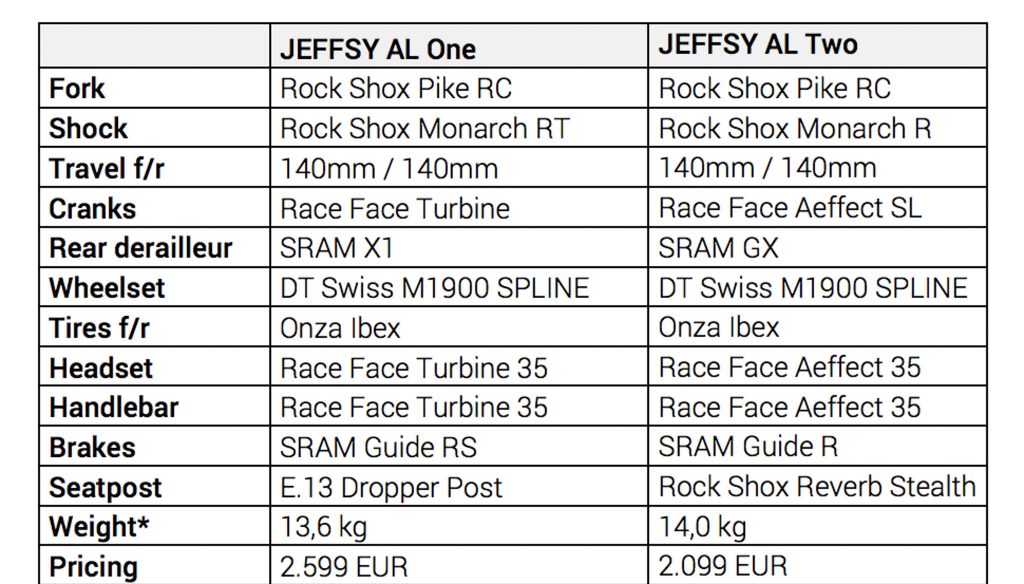 La grosse nouveauté de l’année passée a été la présentation du Jeffsy, un vélo de All-Mountain (140mm de débattement) équipé de roues de 29 pouces. Nous avions adoré le Capra, l’enduro de la marque, et nous terminons actuellement notre test du Jeffsy. Pour 2017, pas de grand changement, à part l’arrivée du montage CF Pro Race. On y retrouve des suspensions Fox Kashima, des freins Sram Guide Ultimate et du carbone un peu partout, du poste de pilotage au pédalier. Deux modèles (le CF Two et AL Two) restent équipés d’un dérailleur avant et de deux plateaux.