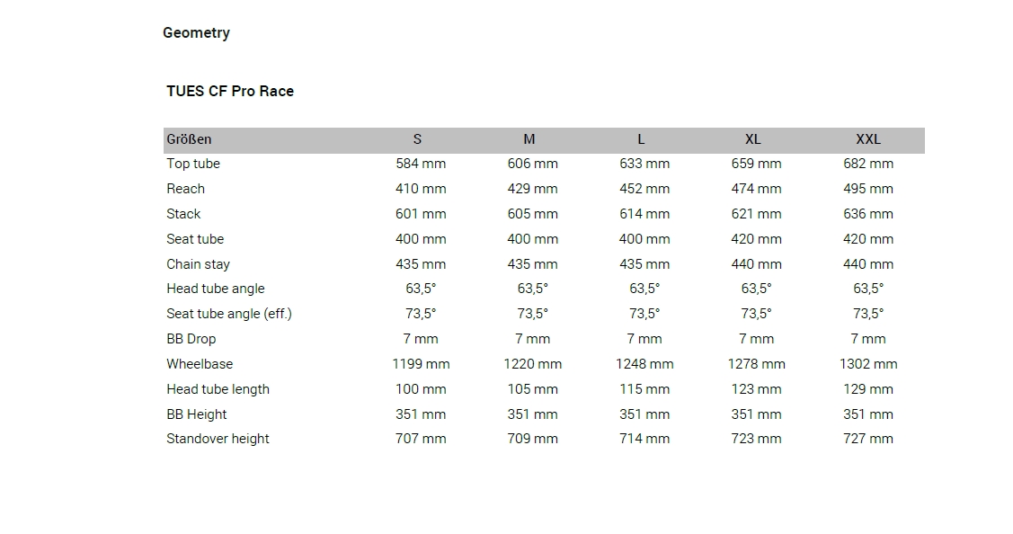 Le Tues carbone est disponible en tailles S, M, L, XL et XXL, toutes avec des tubes de selle bas. L’objectif ? Permettre aux pilotes de choisir finement le reach de leur vélo. Les bases évoluent légèrement en fonction de la taille : 435mm de S à L, 440mm en XL et XXL.