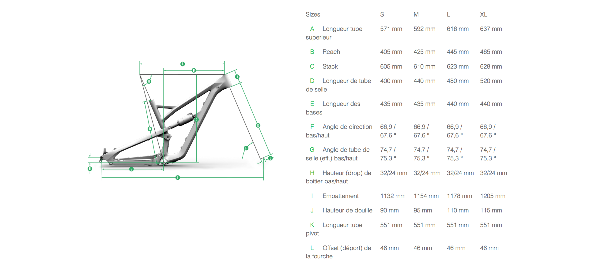 Oui, vous avez bien lu : c’est assez rare que pour être souligné, les bases du YT Jeffsy sont allongées sur les grandes tailles pour garder le même type de comportement et éviter un déséquilibre avec l’avant de la machine. Ce n’est que de 5mm mais tout de même…