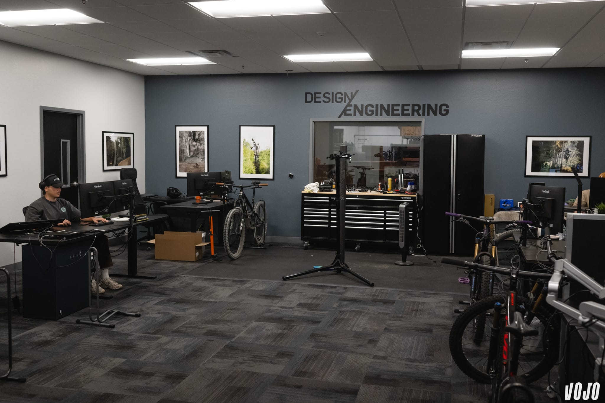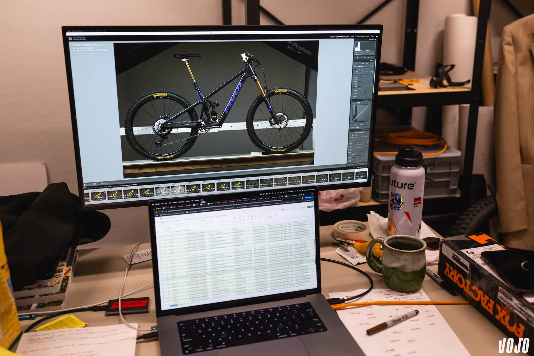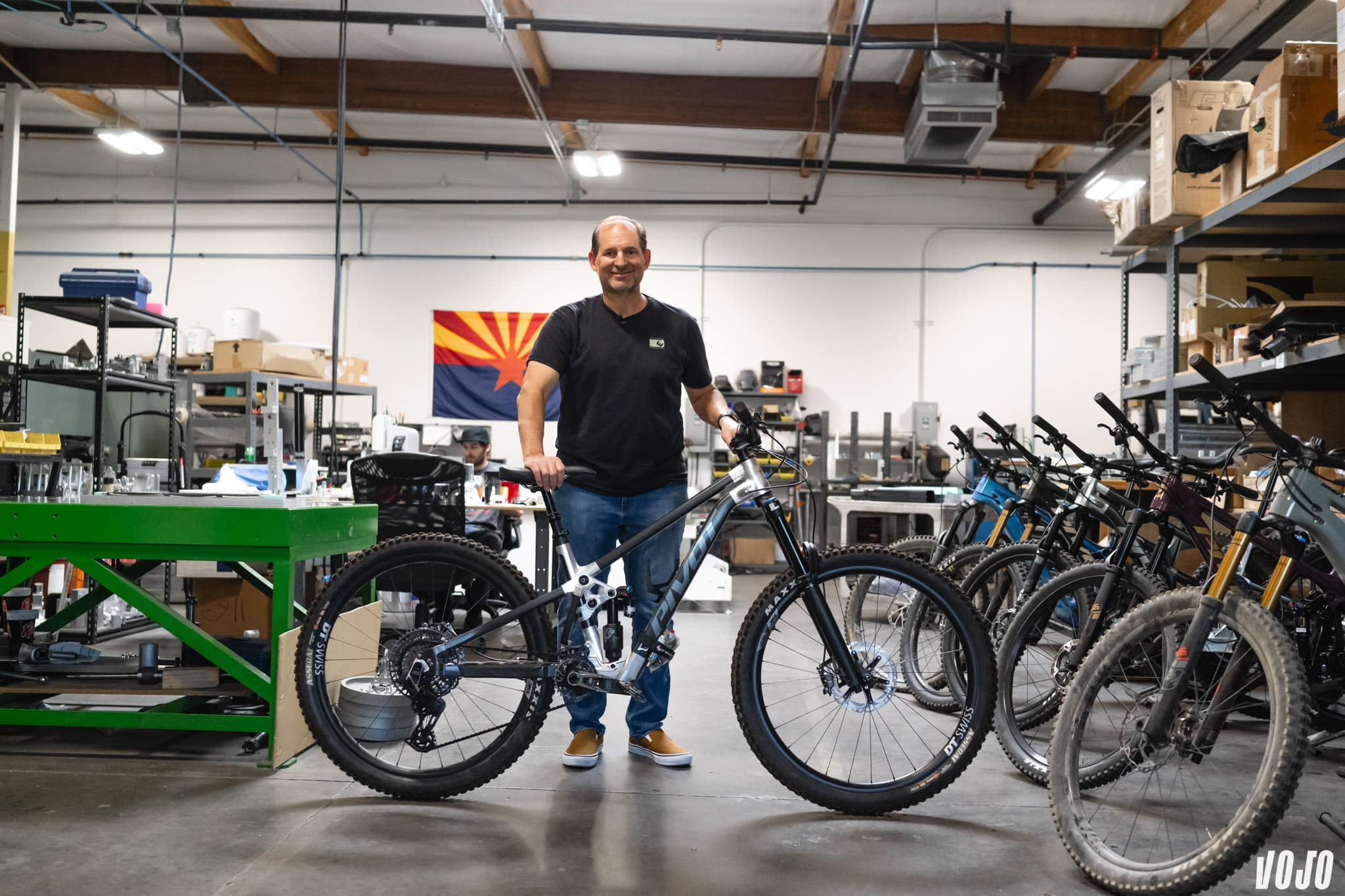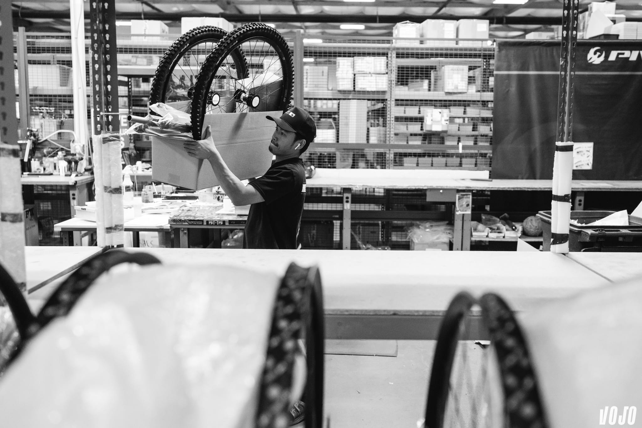 Notre visite tombait bien. Les premiers exemplaires du tout nouveau Pivot Firebird venaient d’arriver à Tempe, en Arizona, en provenance de l’usine de Pivot à Taïwan. L’occasion était trop belle pour ne pas vous en parler. La visite commence dans le hall de l’usine qui accueille Pivot, à Tempe, juste à côté de Phoenix et aux portes du désert de Sonora. Ici, on peut venir tester les derniers modèles de la marque, mais pour nous direction le studio photo, où tous les montages de vélos sont assemblés puis shootés par des équipes de la marque.