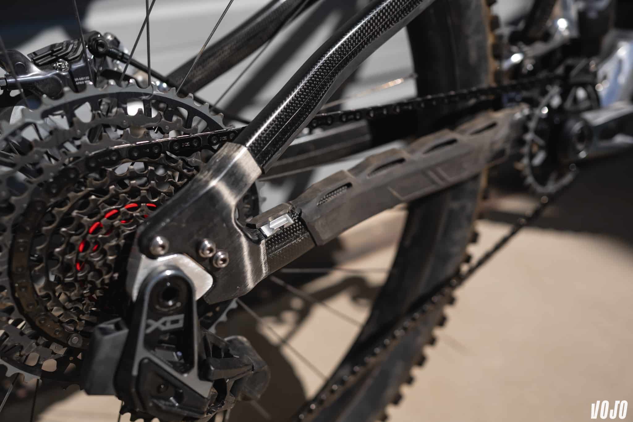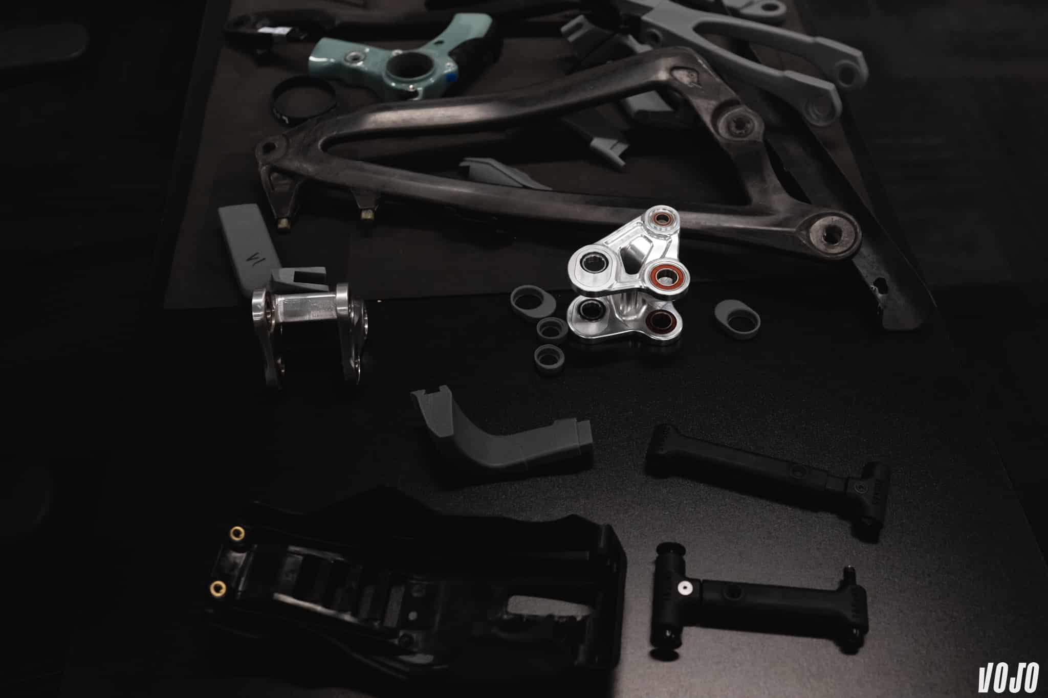 Toutefois, la marque n’a pas choisi la facilité, puisque c’est un prototype complet qui a été recréé pour travailler sur cette nouvelle version. C’est en Arizona que Pivot les conçoit avec des blocs d’aluminium usinés et des pièces en carbone maison. L’objectif est de valider les choix techniques de géométrie, de cinématique, mais également de rigidité.