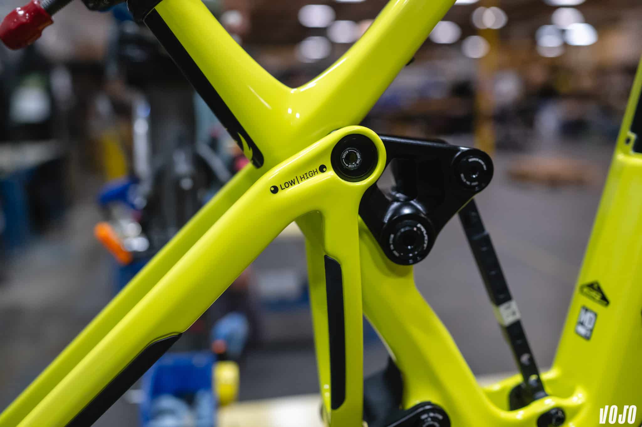 Un autre flip-chip apparaît au pied de l’amortisseur, ce dernier permettant de proposer deux versions d’une même suspension. Plus progressive vers l’arrière, et plus linéaire vers l’avant. Pour Chris Cocalis, c’est une demande du marché qui rechercher des suspensions plus linéaires sur ce type de vélo, tout en accommodant les compétiteurs avec une suspension qui reste progressive dans la première position. C’est une nouveauté qu’on accueille avec plaisir. Le précédent Firebird était un excellent vélo, mais ce dernier restait exigeant par moment, et il fallait savoir le mettre en musique. Avec une position linéaire comme proposée sur ce nouveau vélo, le Firebird devrait devenir un petit peu plus sécurisant dans les portions défoncées quand on est moins en confiance.