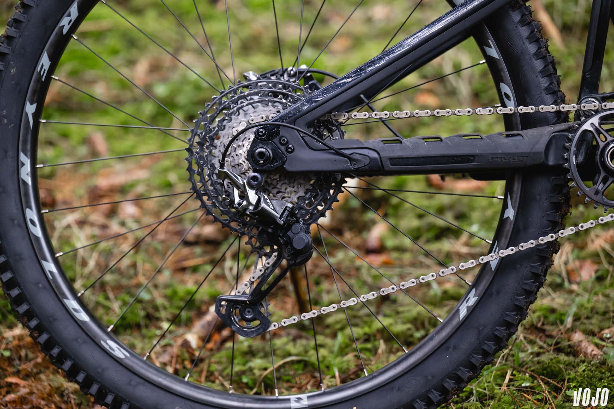 Il est possible de faire évoluer la longueur des bases de 8 mm pour stabiliser son vélo à haute vitesse, ou aller chercher un vélo plus nerveux et facile. Pour ce faire, Pivot a utilisé un brevet déposé lors de la conception d’un fatbike, son « Swinger dropout » qui permet de décaler légèrement la pièce côté transmission, et de rester compatible avec les pattes de dérailleurs universelles UDH ou les dérailleurs en monte directe (Sram T-Type). Côté disque, c’est plus simple et la marque utilise un flip-chip et un adaptateur de frein réversible.