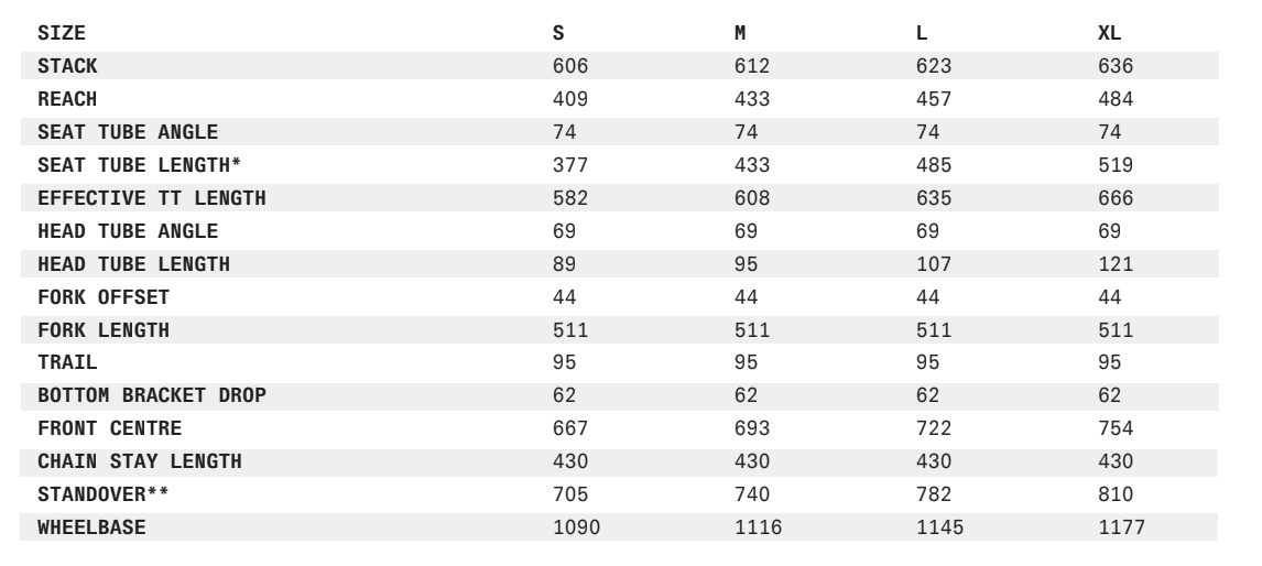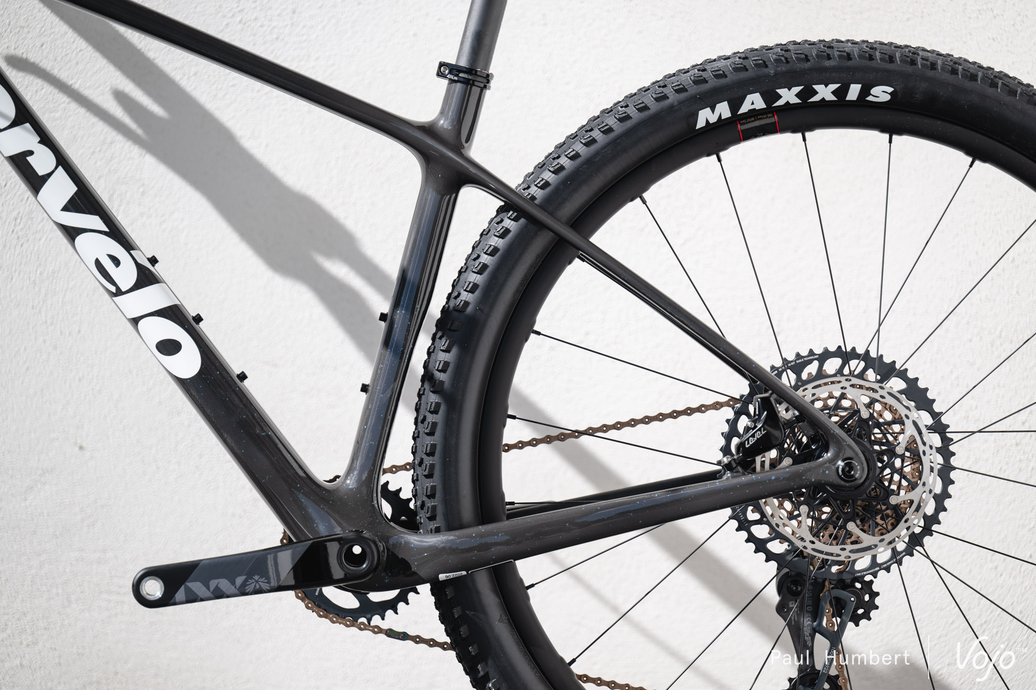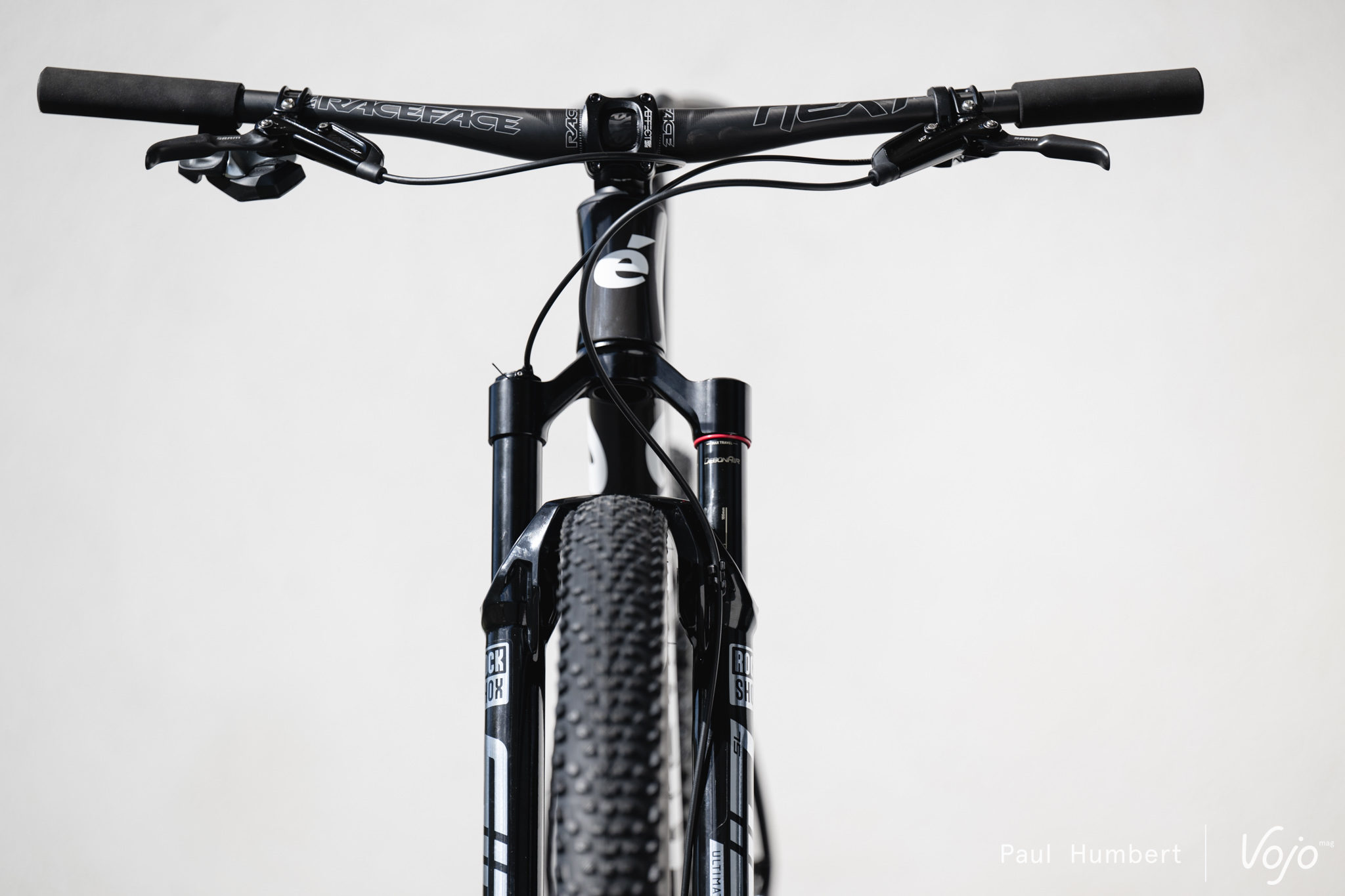 Si la géométrie est sensiblement moderne, elle ne tombe pas pour autant dans la tendance « longer/slacker » (comprenez des vélos toujours plus longs et plus bas) que l’on peut retrouver chez certains autres concurrents. Ainsi, le vélo propose des valeurs assez traditionnelles pour l’angle de direction par exemple (69°). Les bases arrière sont très courtes, avec 430mm, et le cadre plutôt long malgré le discours de la marque, avec 457mm de reach en taille L, ce qui reste une mesure assez importante pour un semi-rigide de XC.