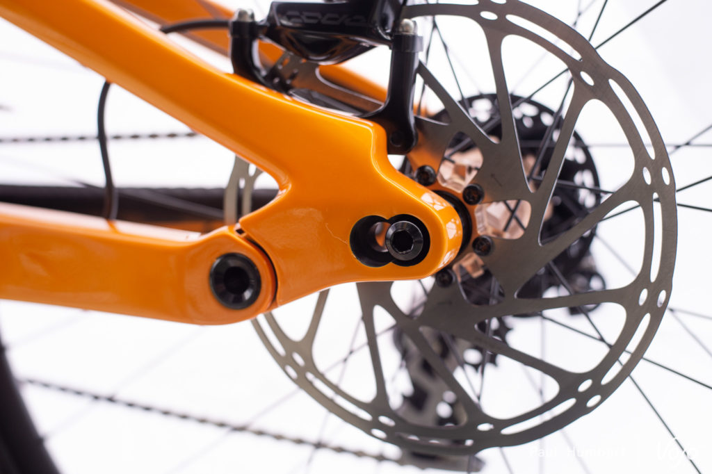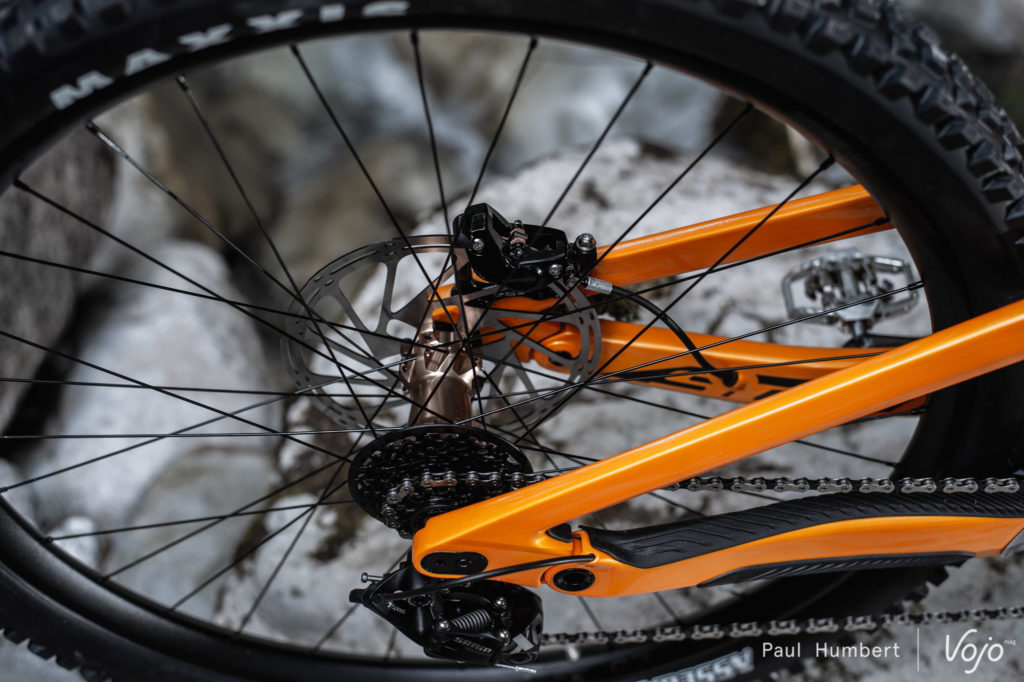 Au-delà de l’aspect esthétique et de la facilité de nettoyage (une demande des pilotes), ce système a d’autres avantages comme nous l’explique Clément Martin : « Vis-à-vis de l’ancien vélo, on a surtout cherché à améliorer la performance au freinage et cette architecture de type FSR est bien meilleure sur ce point. »